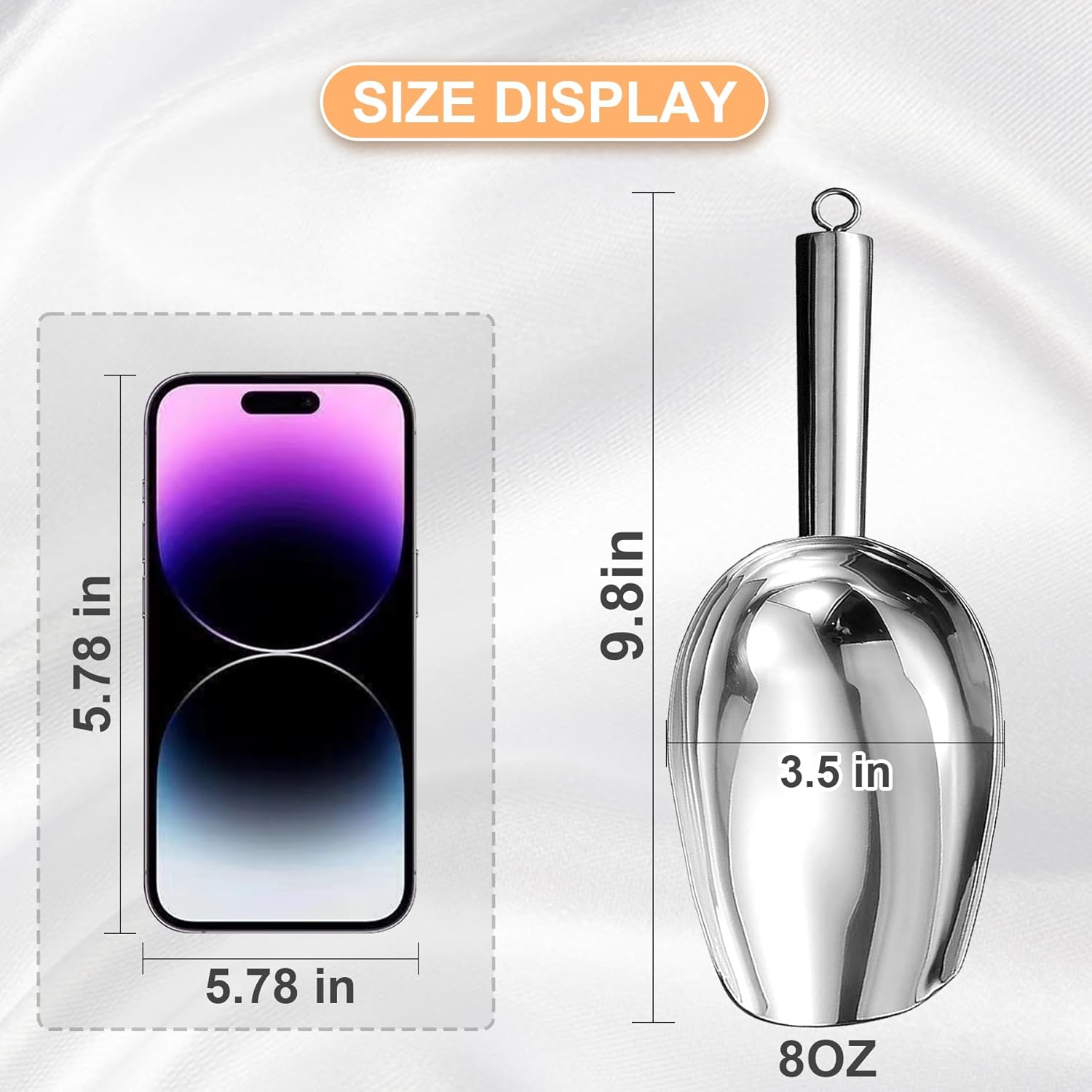 Metal Ice Scoop 8 Oz, Small Stainless Steel Ice scooper for Ice Maker Ice Bucket Kitchen Freezer Bar Party Wedding, Multipurpose for Coffee Bean,Flour Scoop,Dog Food Scoop (8 OZ-Silver)