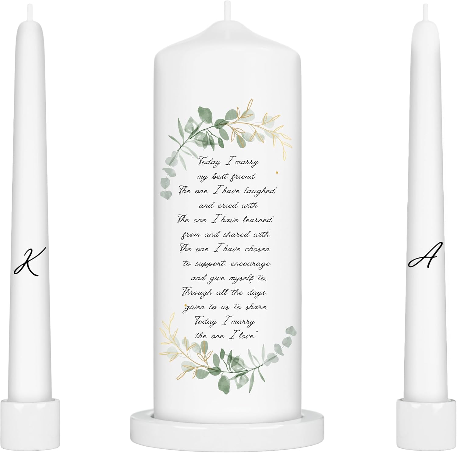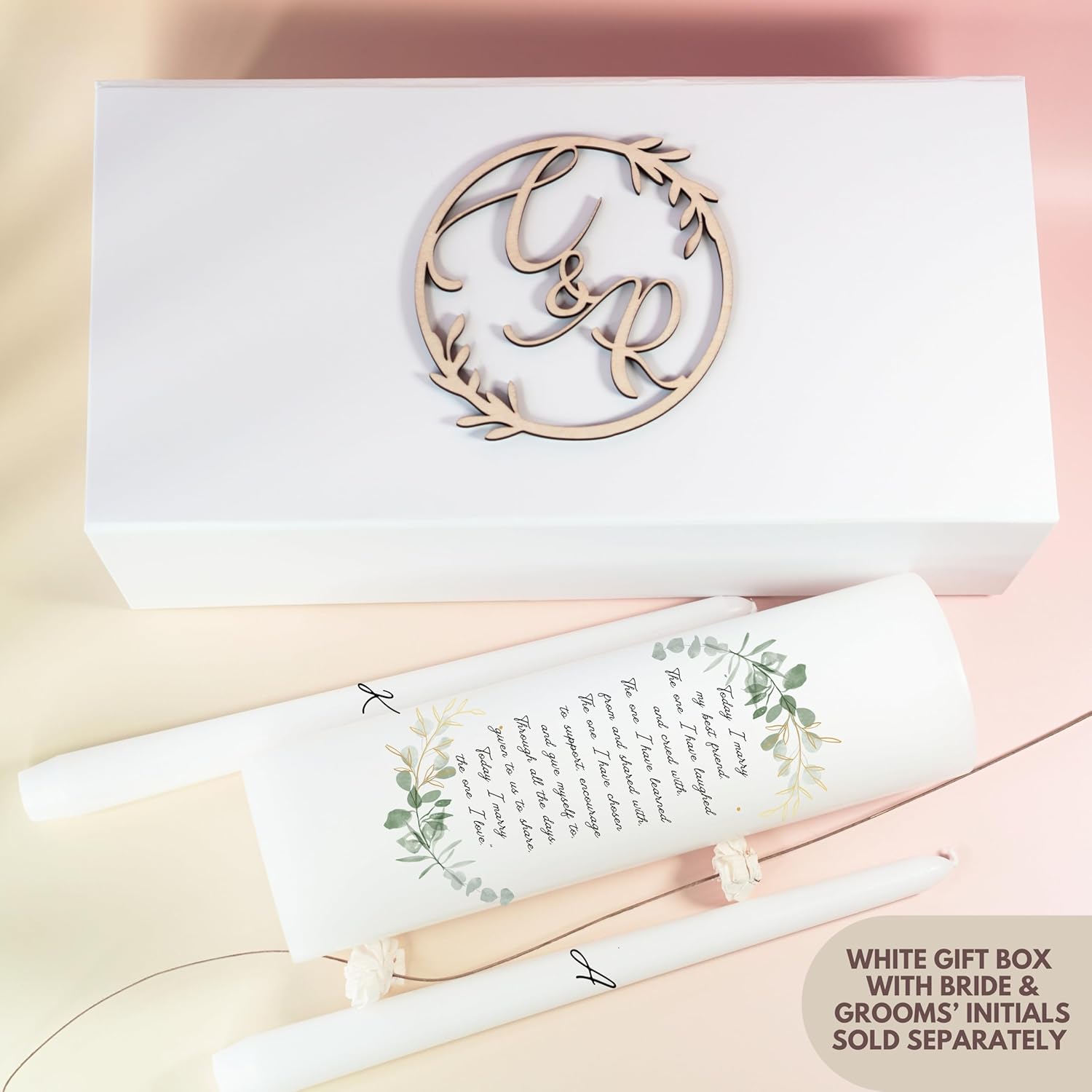 Unity Candles for Wedding, Modern Unity Set, Custom and Personalized Taper Candles with Bible Quote, Unscented White Premium Wax, Religious and Wedding Ceremony, Special Events (Custom Initials)