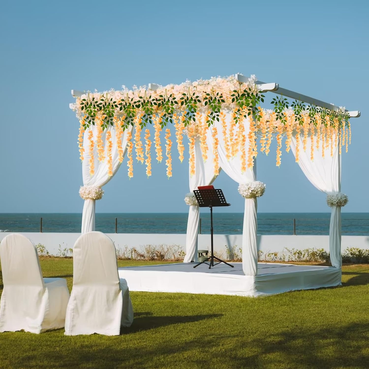 • 【Package Included】12 pieces of silk orange wisteria hanging flowers, each length 45.27 inches. Every artificial wisteria garland has 3 branches and 6 leaves, the wisteria flower petal length is 23.62 inches. (Note: There may be some color differences in different lights)