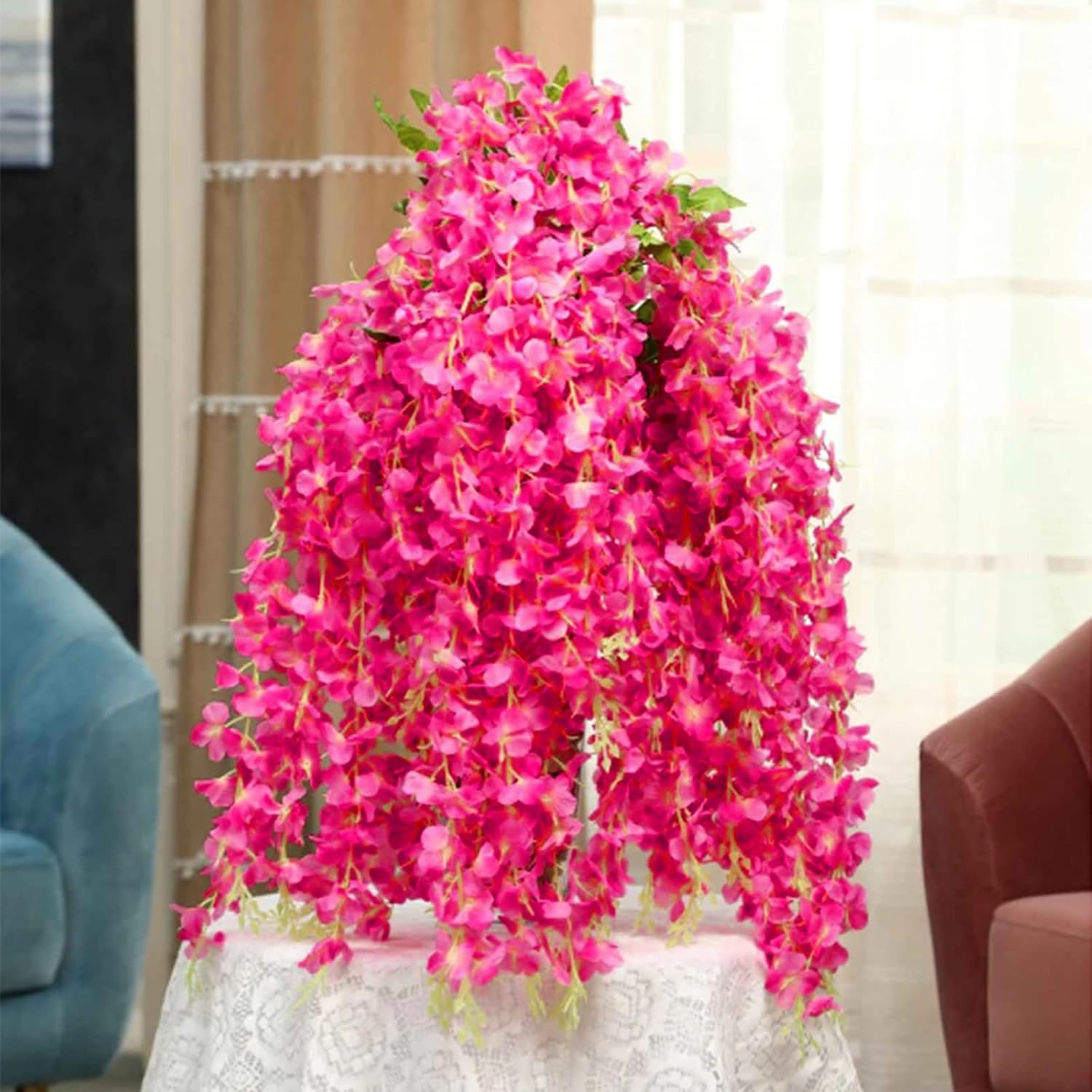 • 【Package Included】5 pieces of silk fuchsia wisteria hanging flowers, each length 45.27 inches. Every artificial wisteria garland has 3 branches and 6 leaves, the wisteria flower petal length is 23.62 inches. (Note: There may be some color differences in different lights)
