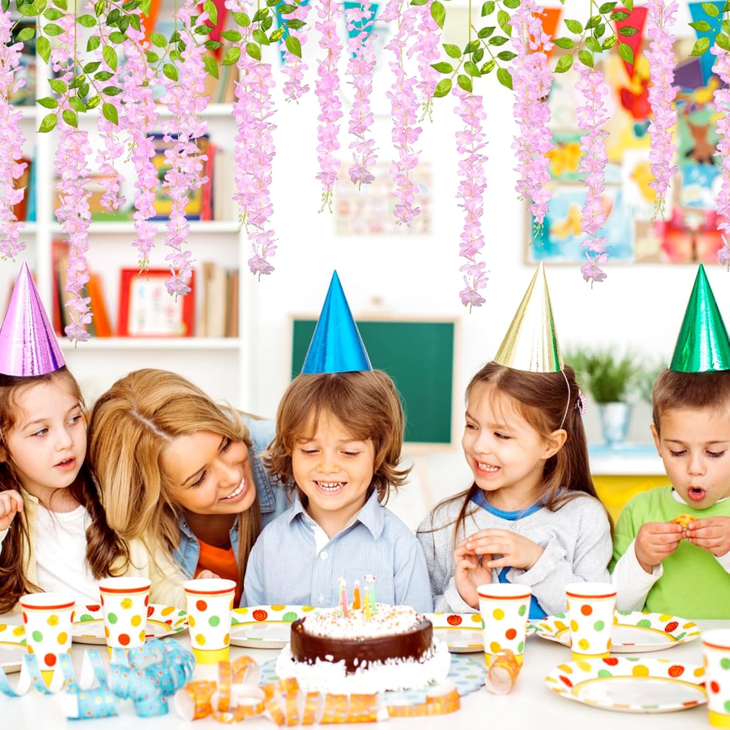 • 【Package Included】5 pieces of silk pink wisteria hanging flowers, each length 45.27 inches. Every artificial wisteria garland has 3 branches and 6 leaves, the wisteria flower petal length is 23.62 inches. (Note: There may be some color differences in different lights)