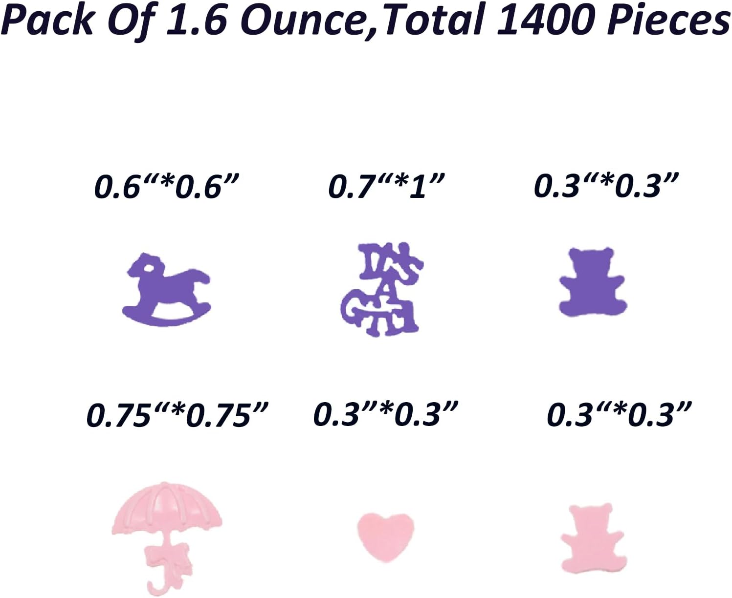 • QUANTITY SUFFICIENT:Each confetti approximate 0.3"*0.3";0.6"*0.6";0.75"*0.75";0.7"*1";1.6 Ounce/Bag,approximate 1400 Pieces in total.It is enough to add this confetti to party tables and centerpiece decorations for an extra-festive touch and a bit of unexpected glam.