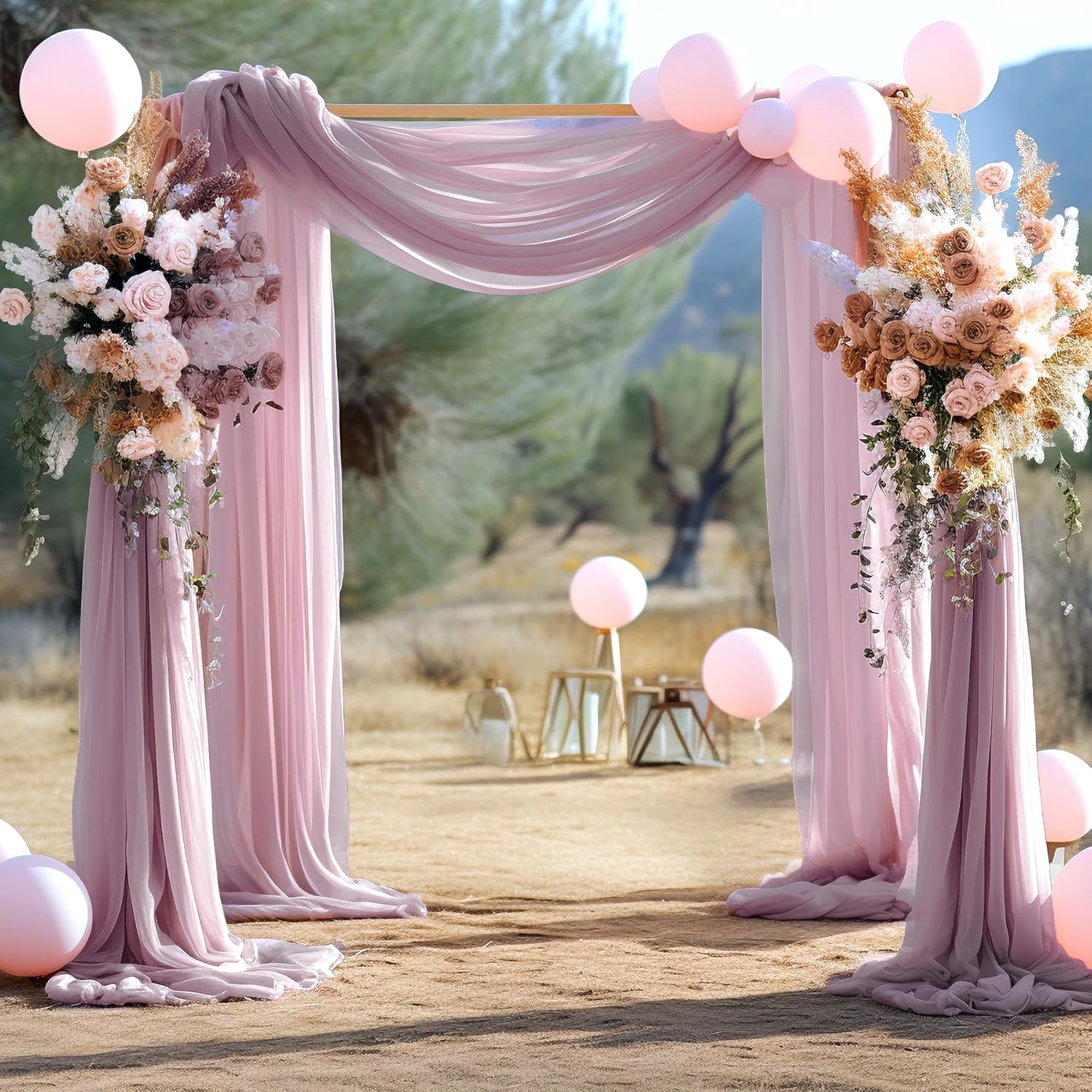 • Dusty Rose Drapes Wedding Backdrop : Transform your wedding arch into a breathtaking centerpiece with our premium sheer drapes. Designed to create beautiful, flowing folds or a soft, cascading effect, these drapes add a romantic and delicate touch to your ceremony or photo backdrop. Perfect for weddings, parties, and special events.