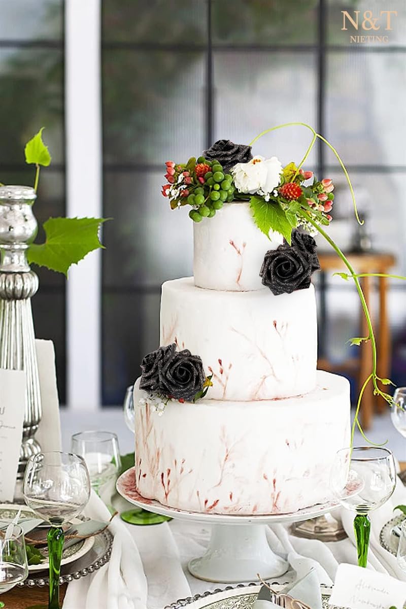 • Perfect for Wedding Decor: Each black glitter flowers rose heads are aprrox 3 inches, stem is approximately 8.2 inches long, which are perfect for making bouquets, centerpiece table decorations, kissing balls, boutonnieres or any other flower decorations that you want at your wedding, party, baby shower or home decor.