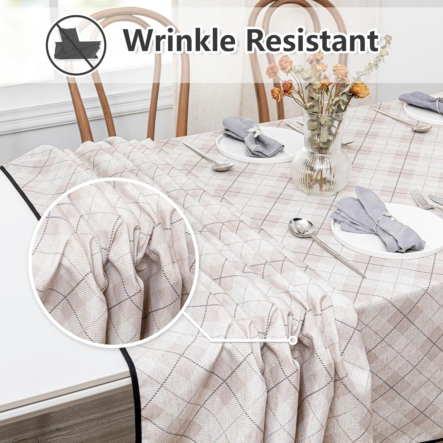 MYSKY HOME Table Cloth 60x120 in Rectangle, Heavy Duty Linen Look Waterproof Tablecloths Farmhouse Tablecloth, Wrinkle Free Table Cover with Black Plaid for Kitchen Dining, Party