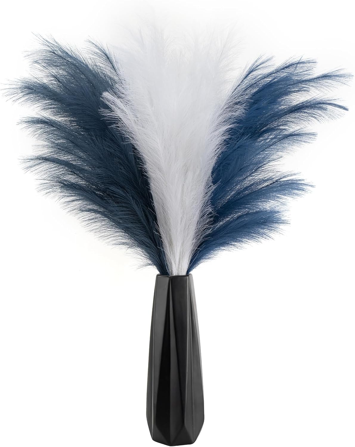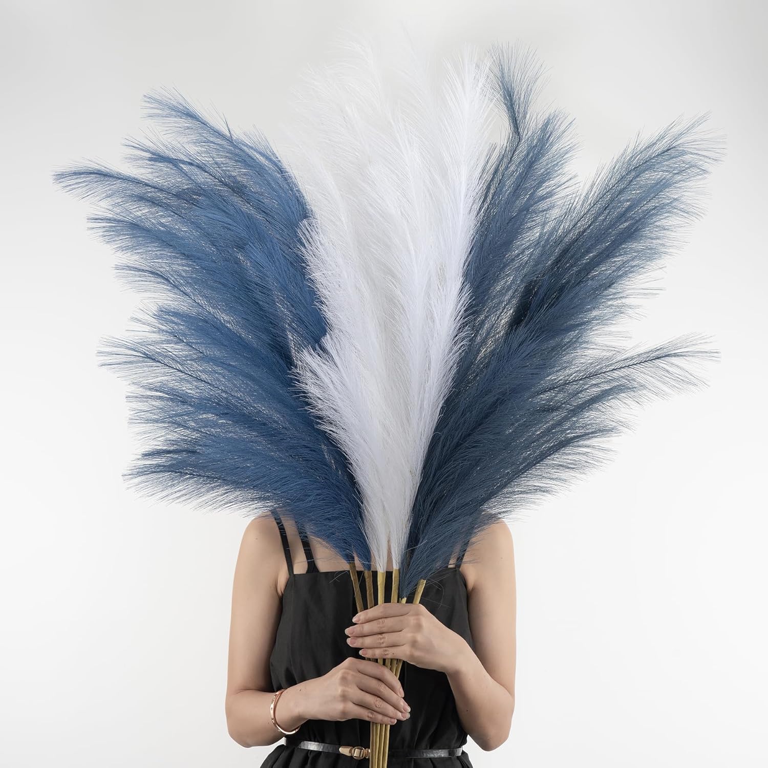 • High End Looking Faux Pampas Grass: It's actually made of a metal wire in the stem and silk feather, it holds shape very well. The pompass grass branches tall bulk is really soft and feather-like, with 18 branches on each stem, and the heads of each stem are designed so you can fluff them up for a fuller look
