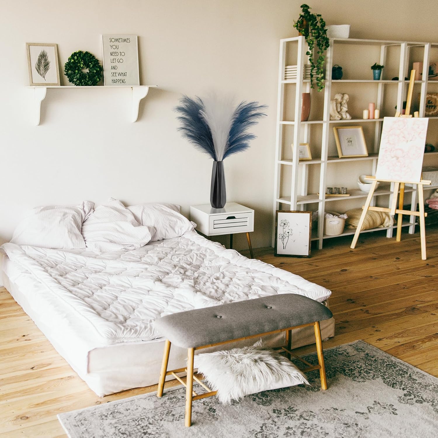 • Minimalistic&Elegant Pampas Grass Decor: Really nice faux pampas grass for home decor, display in your hallway, kitchen, living room, bedroom, front room, dining room, or entryway... any space. Pampas grass are also a great addition to weddings, flower arrangements, lifestyle photography, party, bohemian decorating and etc