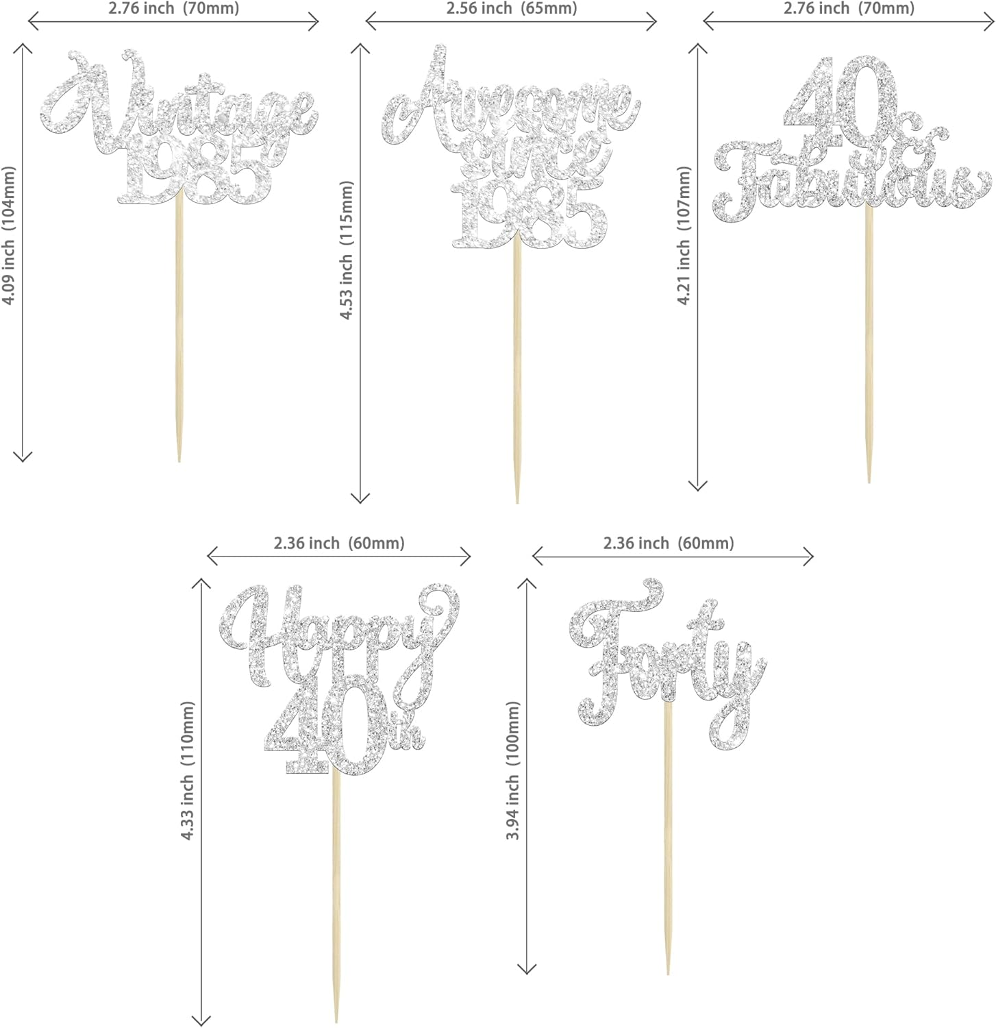 30Pcs Happy 40th Birthday Cupcake Toppers Glitter Forty Vintage 1985 Cupcake Picks Cheers to 40 Fabulous Cake Decorations for 40th Birthday Wedding Anniversary Party Supplies Silver