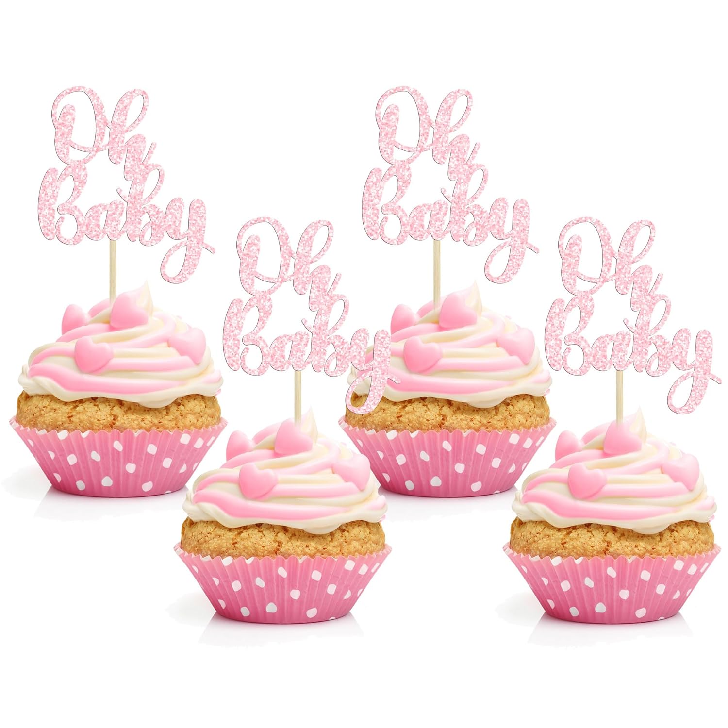 Gyufise 36Pcs Oh Baby Cupcake Toppers Glitter Baby Shower Cupcake Picks for Gender Reveal Baby Shower Kids Boys Girls Birthday Party Cake Decorations Supplies Light Pink