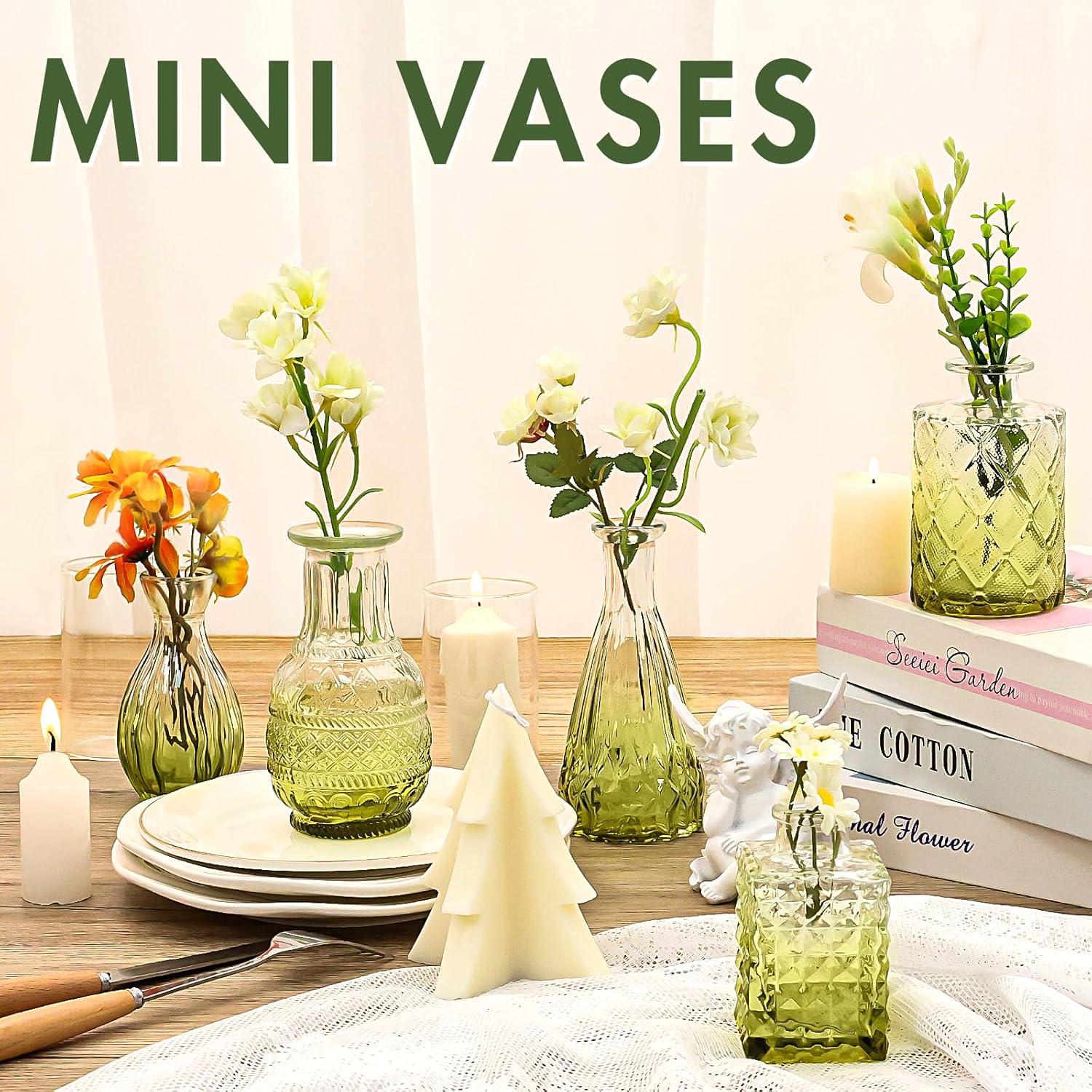 • Multi-Security: High-quality glass ensures that the green vases for decor are safe, non-toxic and non-irritating flavour that won't affect the flowers or pose a risk to human health. Each vase is tightly wrapped by thick styrofoam and thick cardboard box to avoid breakage caused by transport. Safe materials and packaging allow you to take these small glass vases for centerpieces home with peace of mind