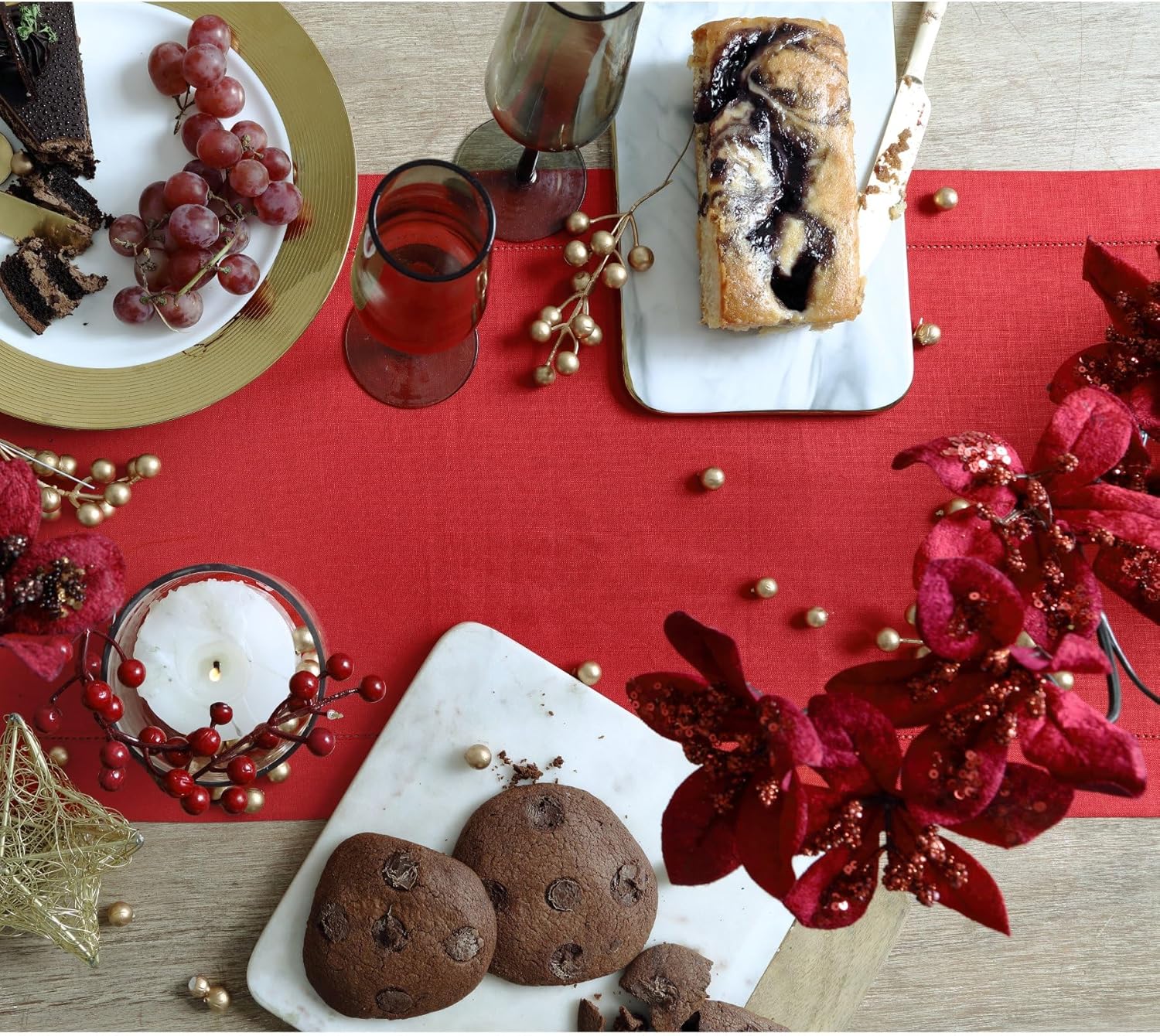• ๐—–๐—ผ๐—บ๐—ฝ๐—ผ๐˜€๐—ถ๐˜๐—ถ๐—ผ๐—ป ๐—ฎ๐—ป๐—ฑ ๐—–๐—ฟ๐—ฎ๐—ณ๐˜๐˜€๐—บ๐—ฎ๐—ป๐˜€๐—ต๐—ถ๐—ฝ : 100% Pure European Flax Linen Christmas Red Table Runner - ๐—–๐—น๐—ฎ๐˜€๐˜€๐—ถ๐—ฐ ๐—›๐—ฒ๐—บ๐˜€๐˜๐—ถ๐˜๐—ฐ๐—ต | Handcrafted By Skilled Artisans.