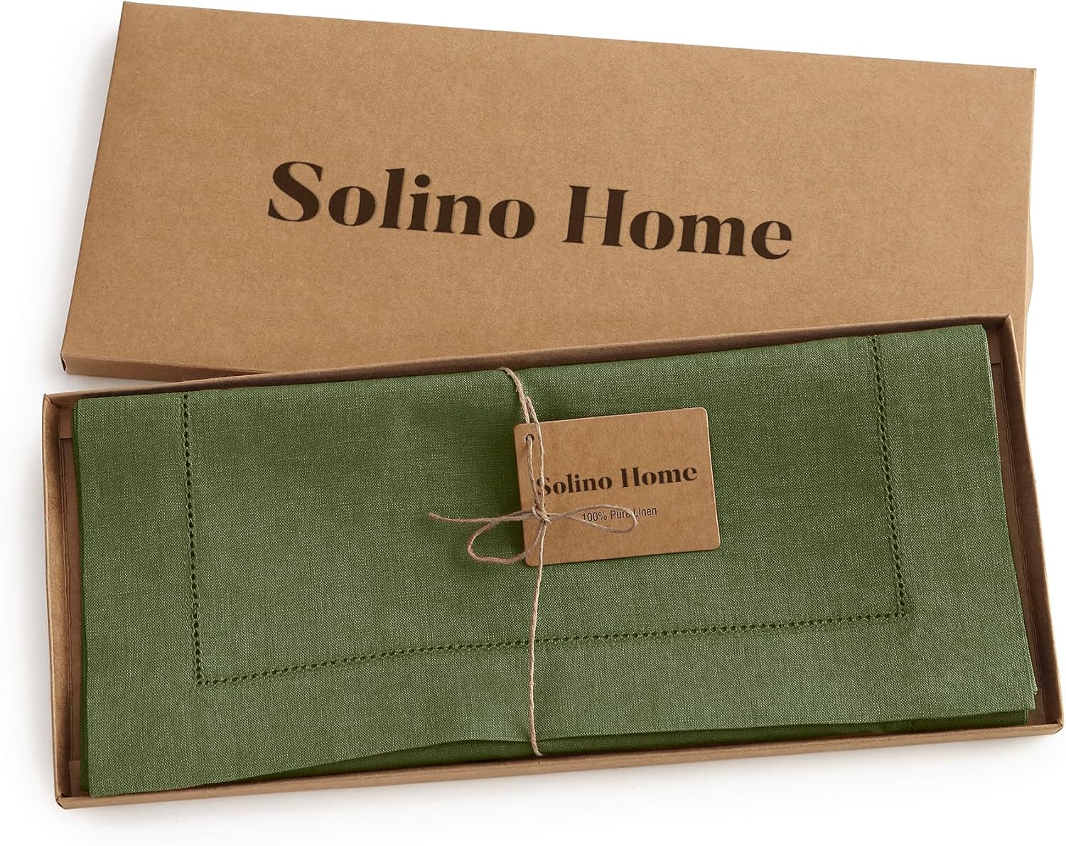 Solino Home Linen Table Runner 36 Inches - 100% Pure Linen Olive Hemstitch Table Runner 14 x 36 Inch Ideal for Dresser and Coffee Tables - Classic Hemstitch - Thanksgiving
