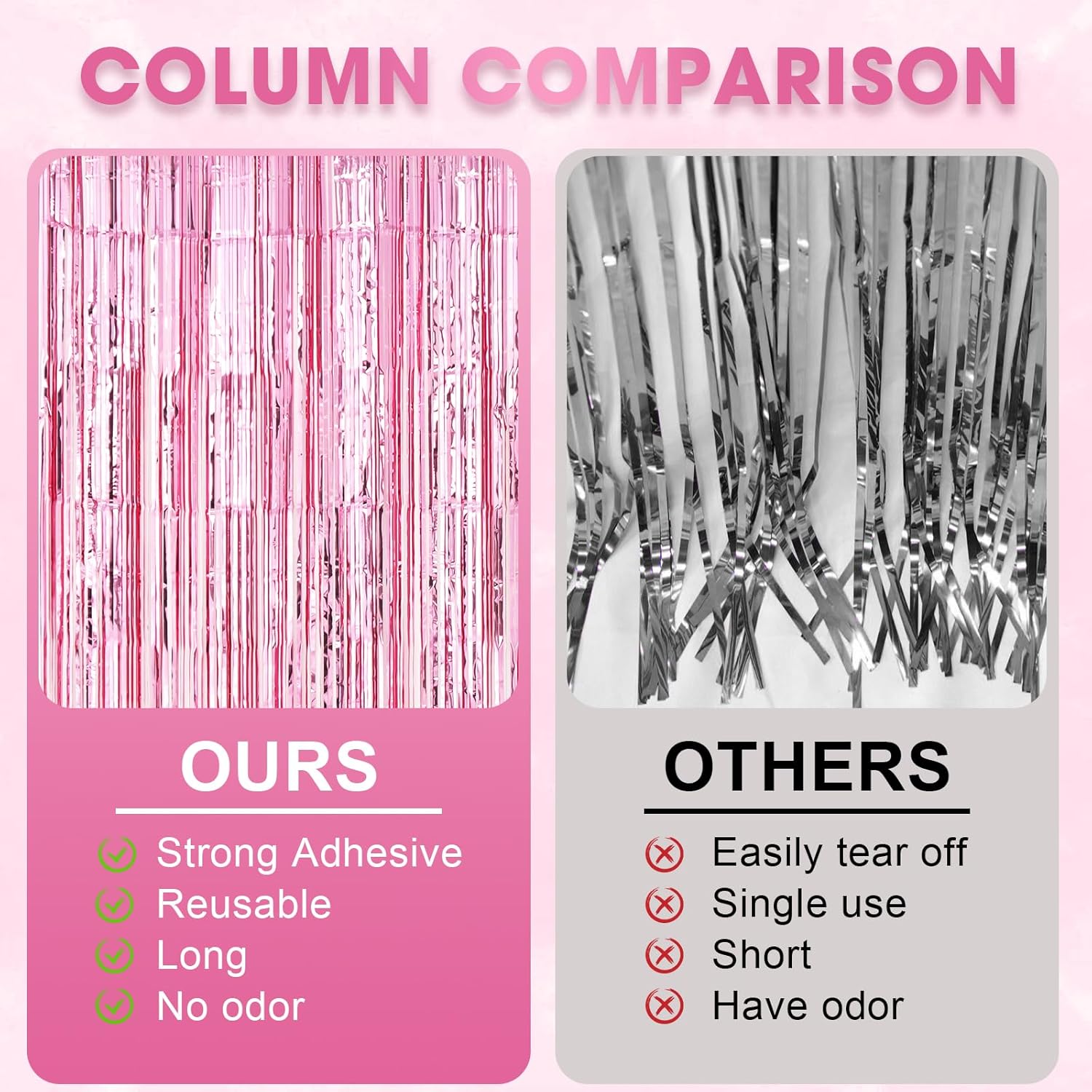 • Eye-Catching Design: These tinsel backdrops boast vibrant colors and a shimmering effect that reflects light beautifully. Your friends will be mesmerized by the captivating atmosphere these curtains create