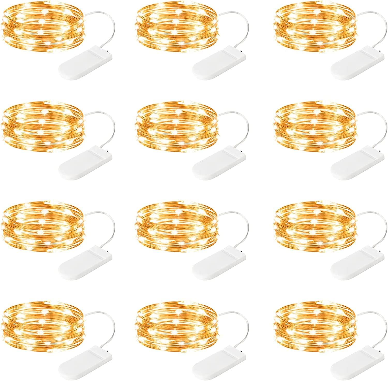 • 【 12 Pack Battery Operated LED Fairy Lights 】- Powered by 2 CR2032 batteries (included), the 7 feet micro fairy light with 20 upgraded energy-efficient LEDs is perfect for both everyday decorations as well as holiday decor. The thin copper wiring and small-sized LED bulbs will add a delicate and cozy touch to your personal space.