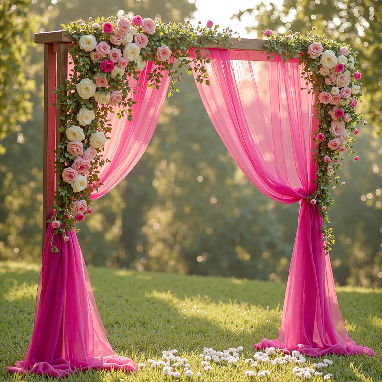 • What You Get: Including 1 panel hot pink chiffon wedding arch drapes, each panel is 29" wide by 6 Yards (216 inches) long. Voile sheer chiffon draping fabric are good choice to decorate your wedding arch arbor.
