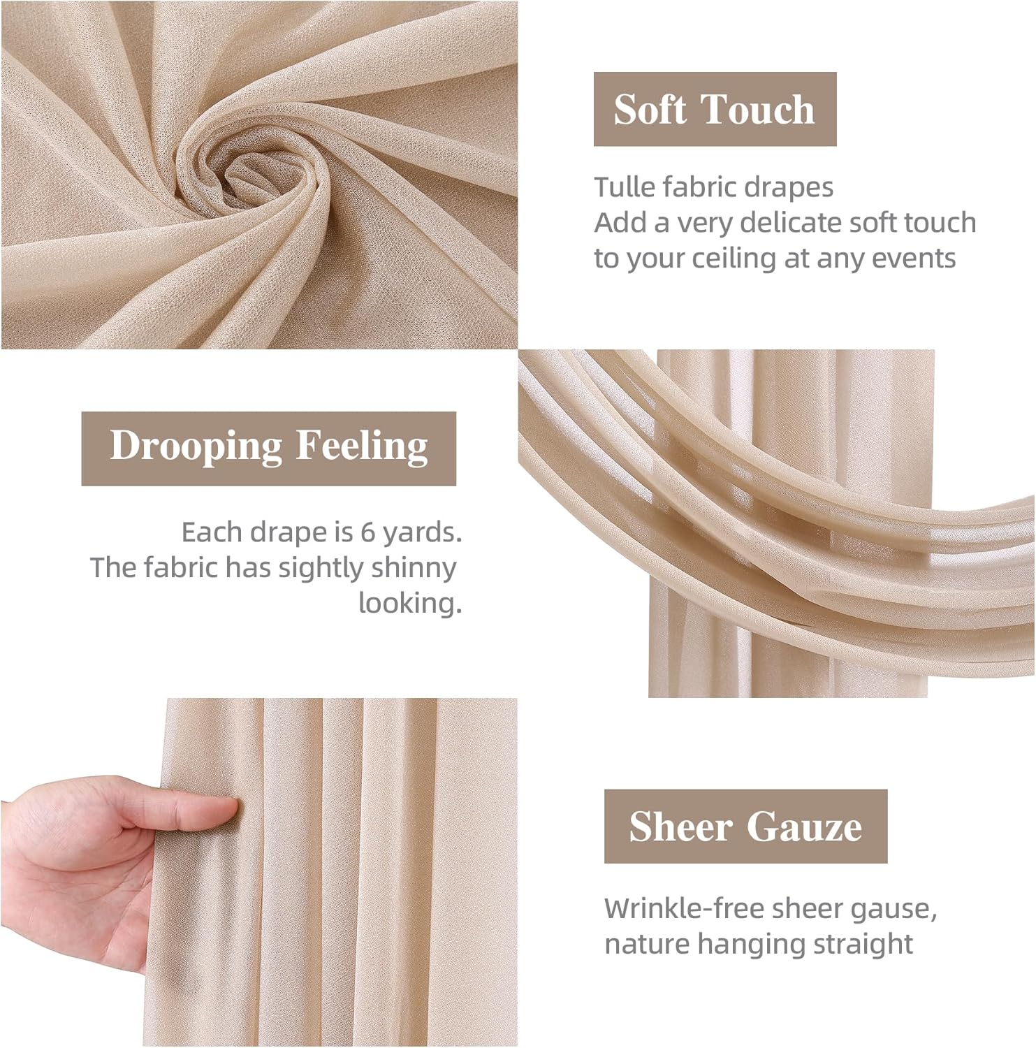Wedding Arch Draping Fabric, 1 Panel 28" x 19Ft Deep Champagne Arch Drapes Sheer Backdrop Curtain for Wedding Ceremony Party Ceiling Decor
