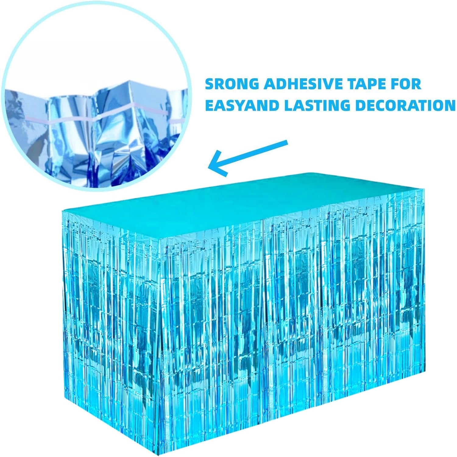 • 【RELIABLE SHINY FOIL TABLE SKIRT】Metallic tassel table skirt are made of aluminum foil with sequins, making the foil table skirt more shiny and beautiful, making the party more complete! They can stay stuck on very well, with smooth surface, great for your party venue decoration