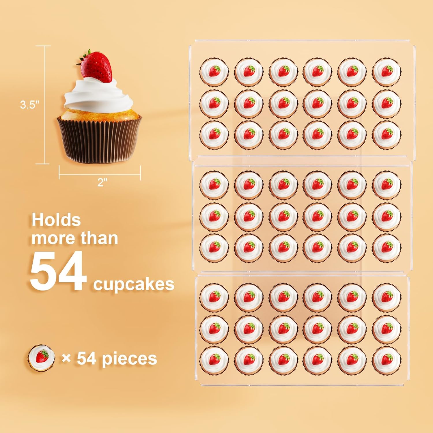 • [Impress Details] With a thickness of 0.12 inches, the clear acrylic material boasts remarkable strength and durability. The smooth edges eliminate any worries of scratching, while the open end facilitates effortless cleaning. Notably, 3 sets of our large cupcake display can gracefully hold up to 54 cupcakes, each with a diameter of 2 inches.