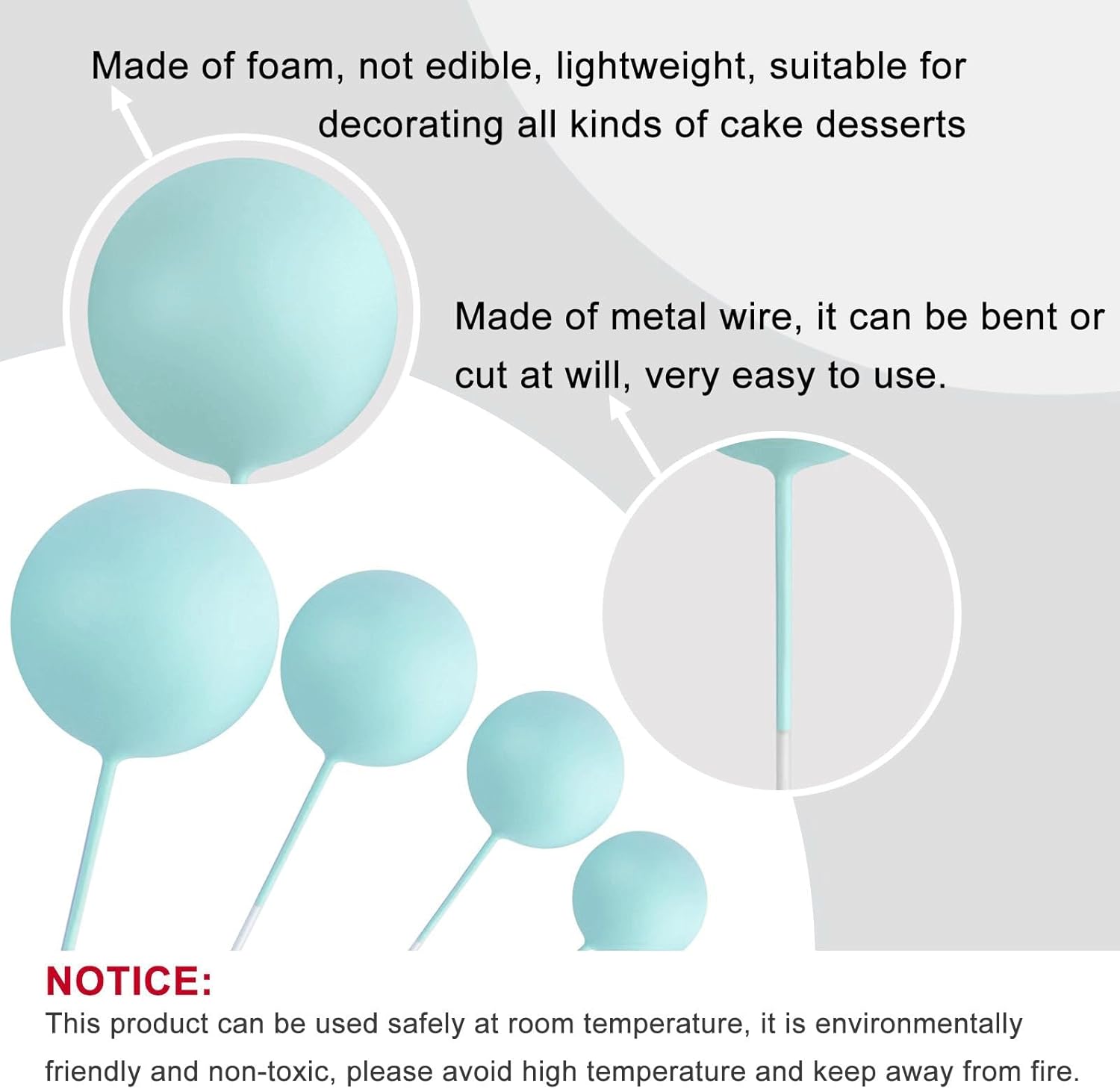 ASTARON 20 Pcs Ball Cake Topper Decorations Mini Balloons Cake Topper Sticks Light Blue Balls Cake Picks Cake Topper Balls Cake Decorations for Wedding Birthday Cake Decorations