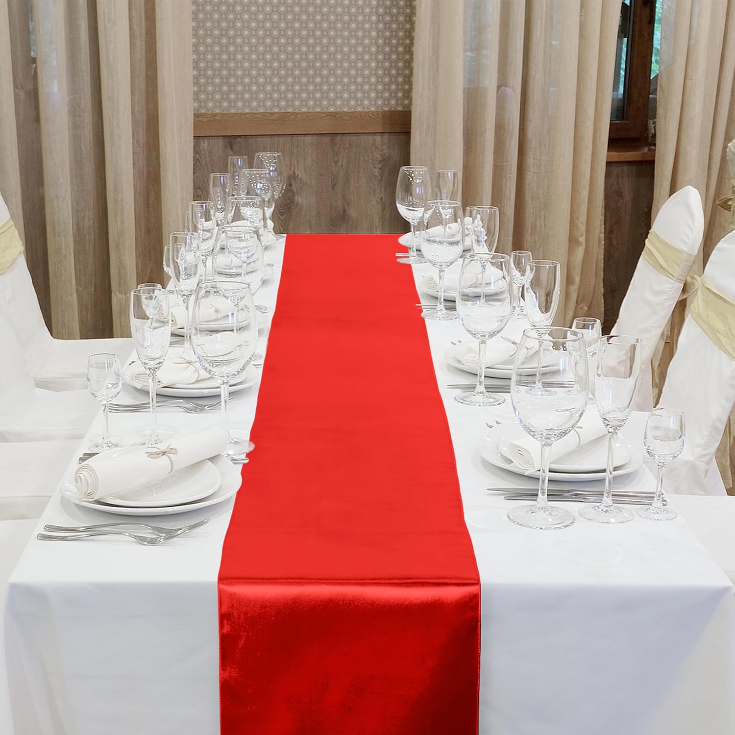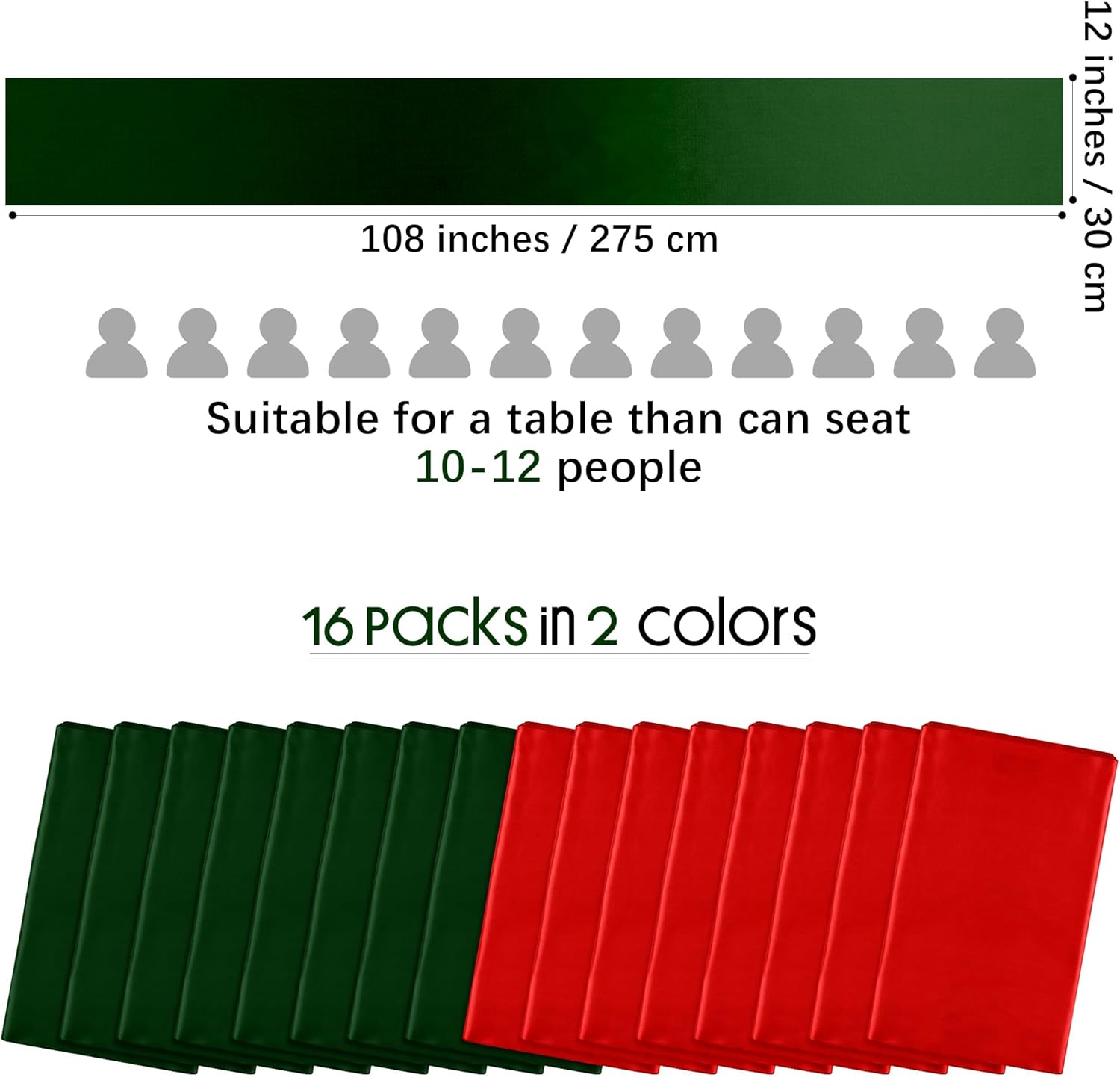 Aneco 16 Pack Christmas Satin Table Runner 12 x 108 Inch Xmas Red, Black Green Long Wedding Satin Silk Table Runner for Wedding Banquet Graduations Birthday Christmas Party Decoration