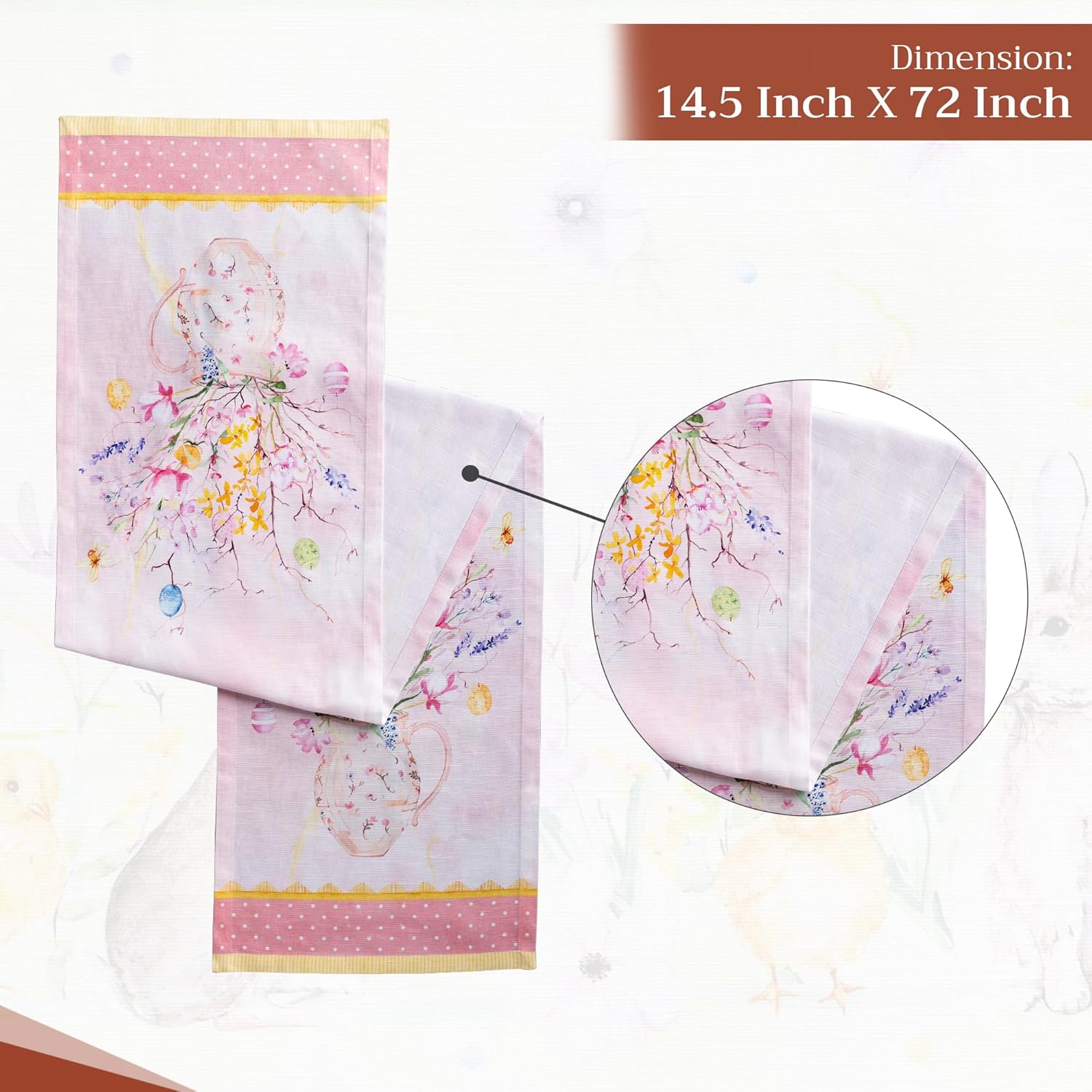 Maison d' Hermine Table Runner 100% Cotton Single Layer Table Runners 72 inches Long Decorative for Kitchen Dining Party Baby Shower Wedding Bridal Shower Spring Summer (Easter Zest, 14.50" x 72")
