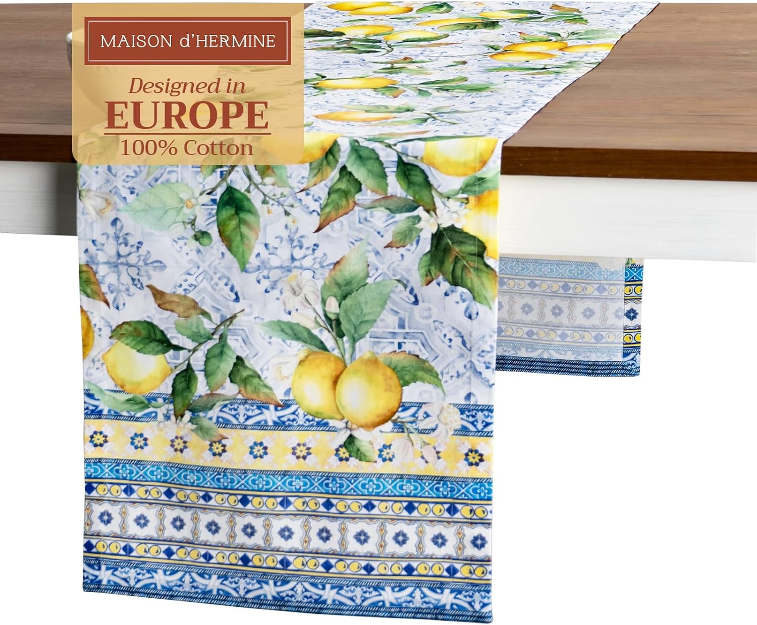 Maison d' Hermine Table Runner 100% Cotton Single Layer Table Runners 72 inches Long Decorative for Home Kitchen Dining Party Baby Shower Wedding Bridal Shower Spring Summer (Citrus, 14.50" x 72")