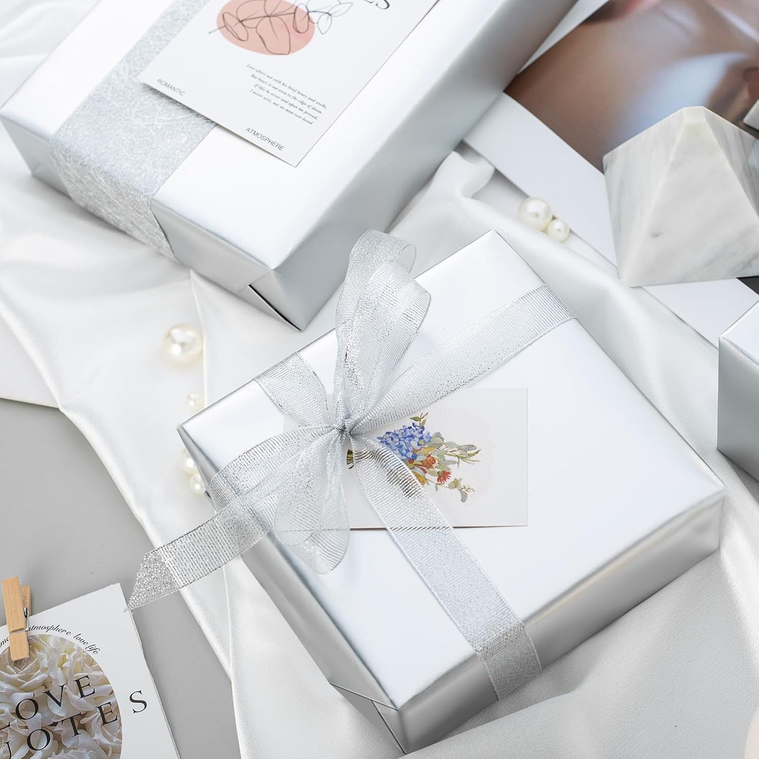 • Size:High quality water repellent silver wrapping paper, not easy to tear. 17 iinch * 33 feet Suitable for small and medium gift box packaging.