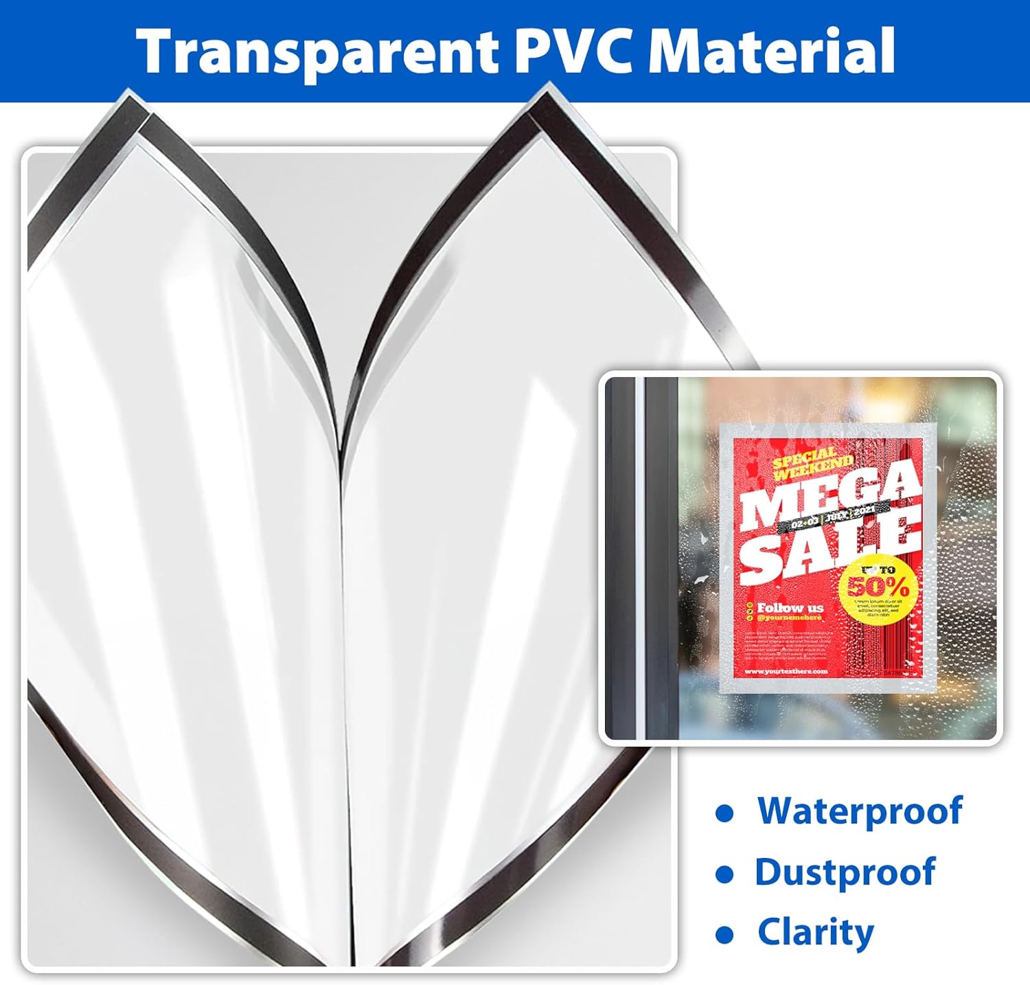 • ✔Transparent PVC Cover - The front cover of the magnetic sign holder is made of transparent PVC, which prevents dust, rain and stains from entering and effectively protects the clarity of the poster.