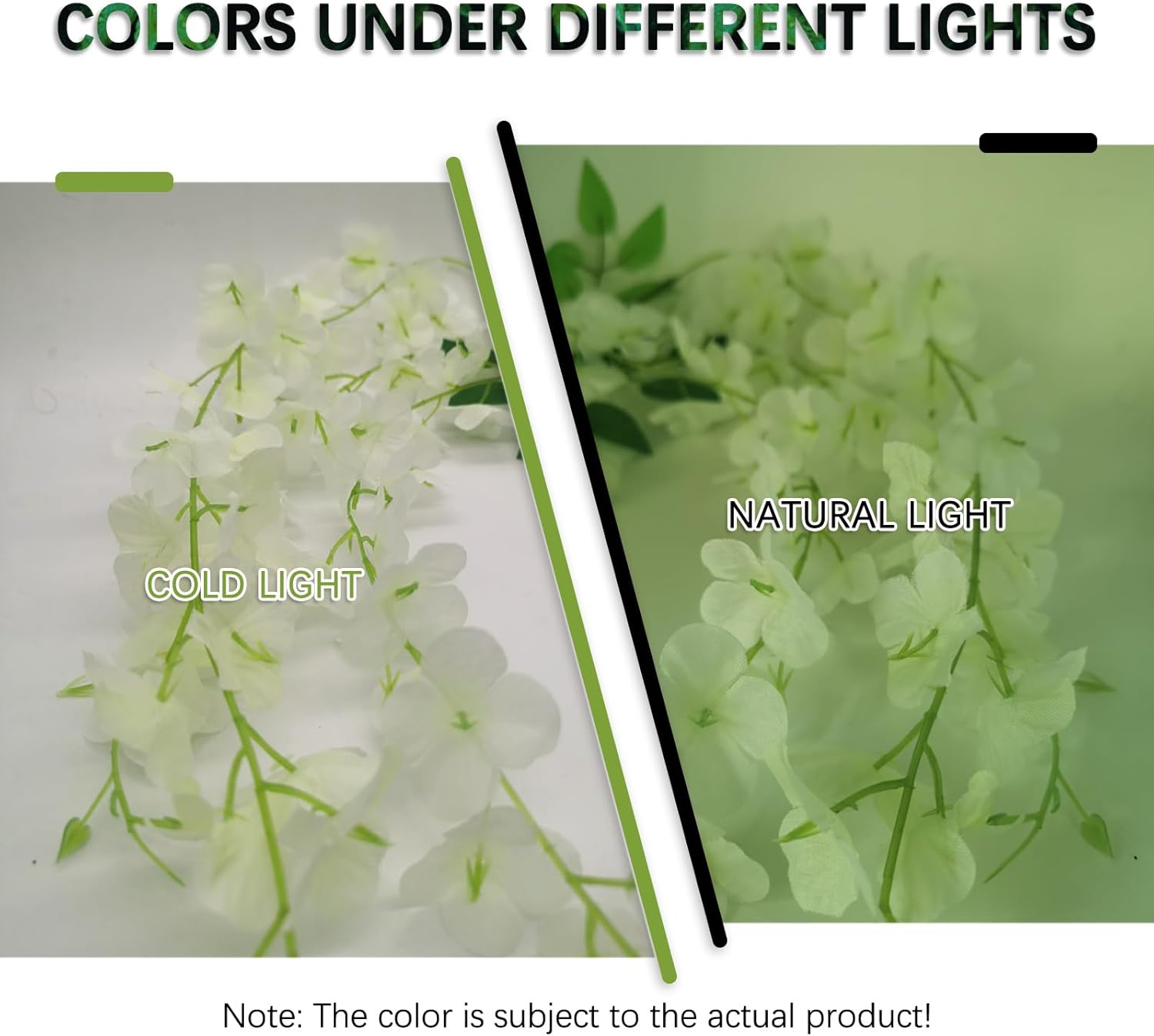 • 【Package Included】12 pieces of silk white green wisteria hanging flowers, each length 45.27 inches. Every artificial wisteria garland has 3 branches and 6 leaves, the wisteria flower petal length is 23.62 inches. (Note: There may be some color differences in different lights)