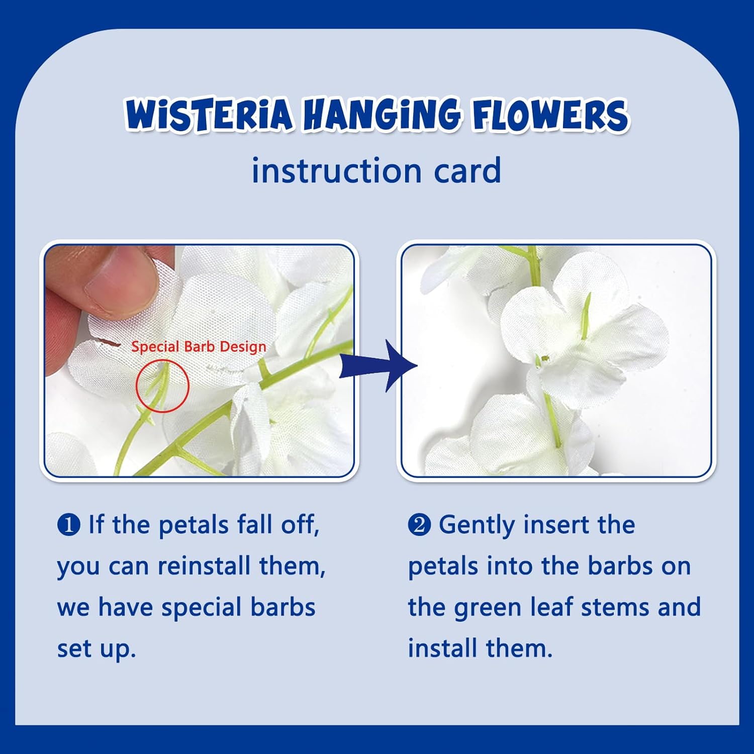 • 【Wisteria Flower Vines】Whether you decorate beautiful royal blue wisteria floral garland indoors or outdoors, you can achieve a magical decorative effect. Decorating the interior makes your home look full of life while decorating the exterior makes the environment more springy.