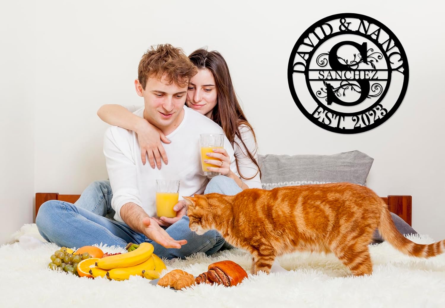 • PERFECT FOR GIFTING: Looking for an extra special wedding gift? Our custom metal name sign personalized with names is an unforgettable gift that will be treasured,Beautiful home decor More than a name sign, it's an exquisite metal wall art home decor sign. This eye-catching piece of art will add a touch of elegance to any room.