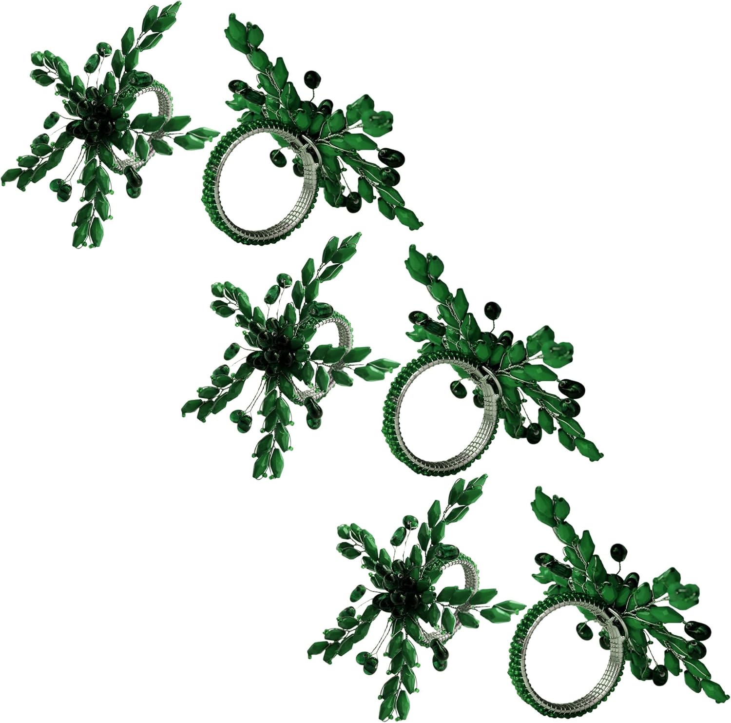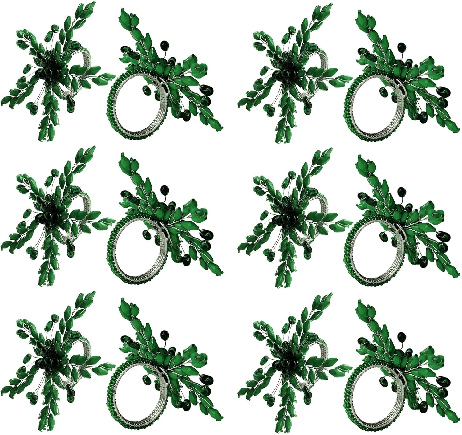 Napkin Rings Set of 12 for Dining Table Decoration Parties Everyday Metal Napkin Holder Leaf Dark Green (Pack of 12)