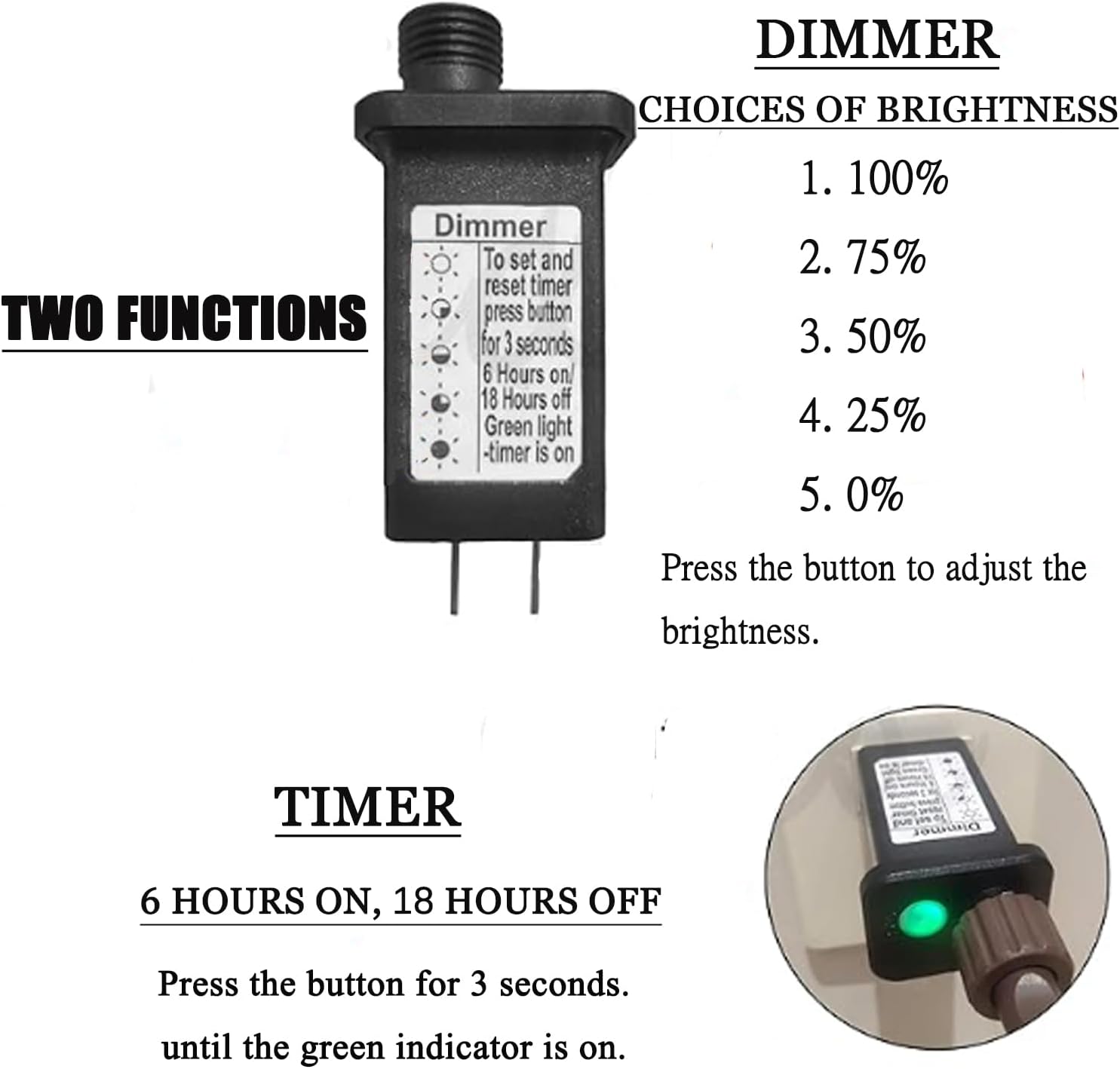 • 【DIMMER & TIMER】: This tree branch lights is featured with dimmer function for different brightness needs. Choices of 100%, 75%, 50%, 25% and 0% five brightness. Timer function is included, 6 hours on and 18 hours off or on/off manually