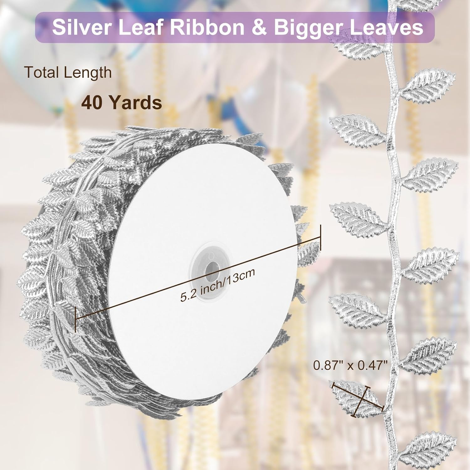 • [Fit for Multiple Occasions]: The total length of the ribbon is 40 Yards, and each leaf is 0.87"(L) x 0.47"(W). It's long enough for the needs of most occasions decoration, and you are free to cut it according to your needs. Great for baby showers, wedding, birthday party, Greek party, Christmas, Halloween, Thanksgiving, Easter, etc.