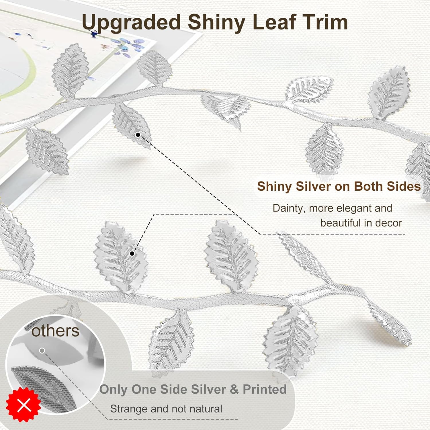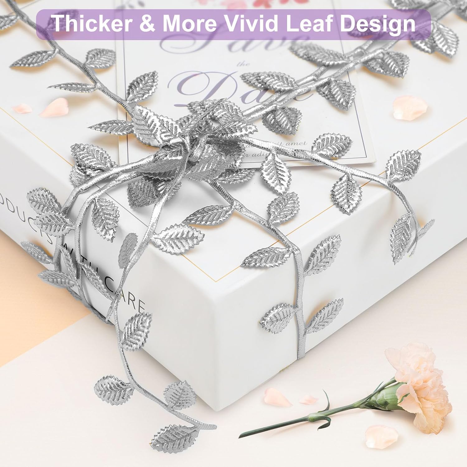 • [Shiny Silver Leaf Ribbon]: This silver ribbon set is an upgraded design with shiny silver color on both sides, not like other leaf ribbons which are colored on only one side. Bright and shiny silver leaf trim will make your project more attractive and charming.