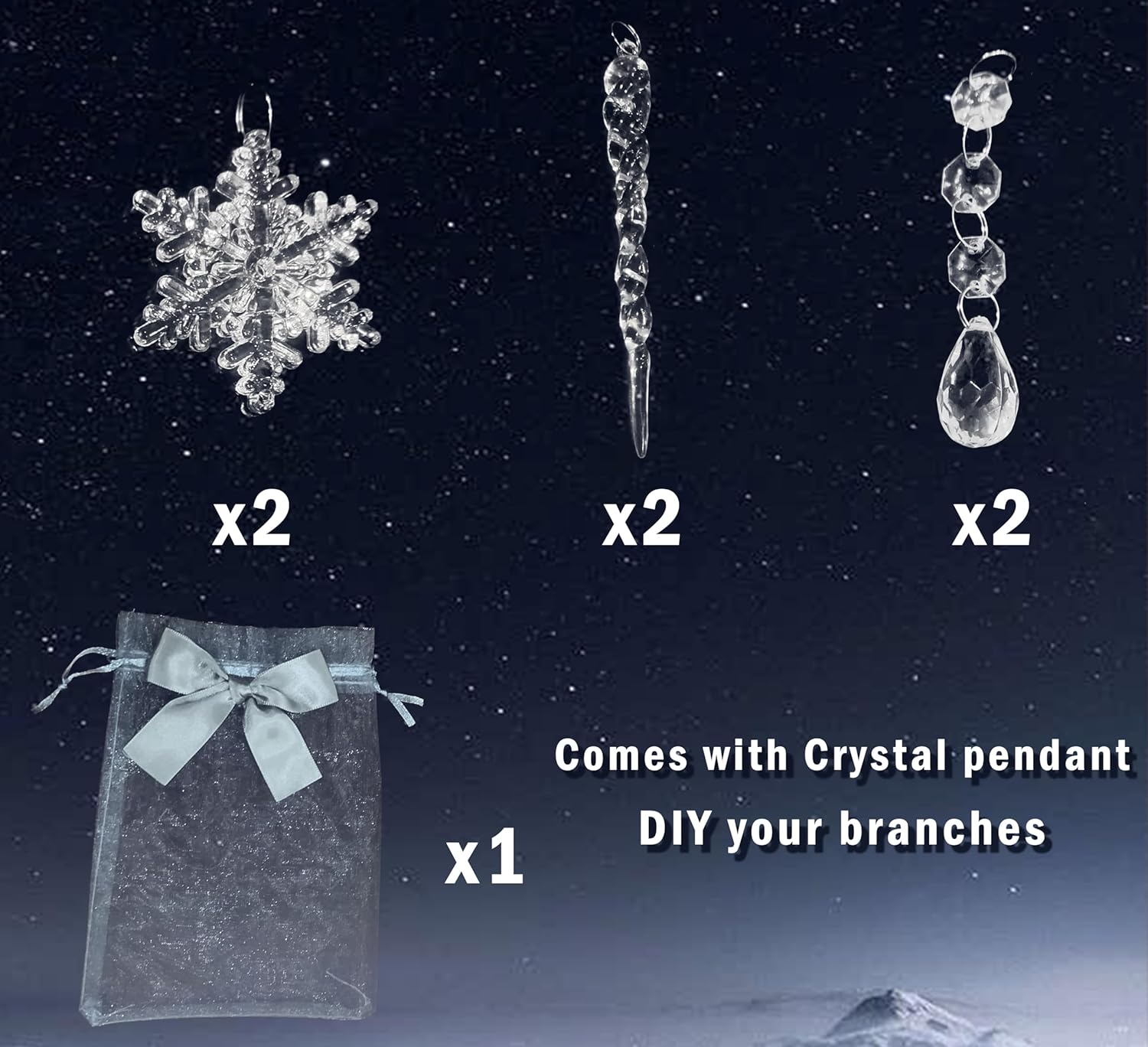 • 🎄 Bendable twig branches: These branches are strong but flexible,so you can shape them as desired,also you can hang your little ornaments for holiday-themed decorations or year-round festive use indoor or outdoor.(come with a set of crystal Pendant)