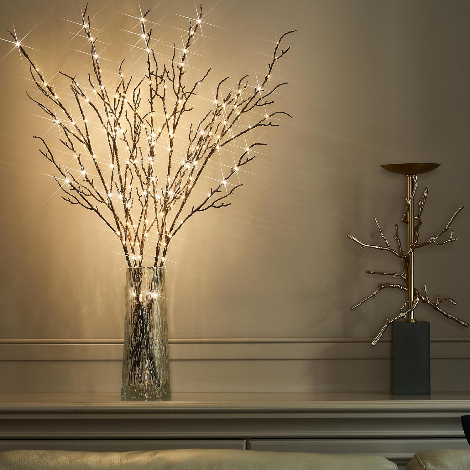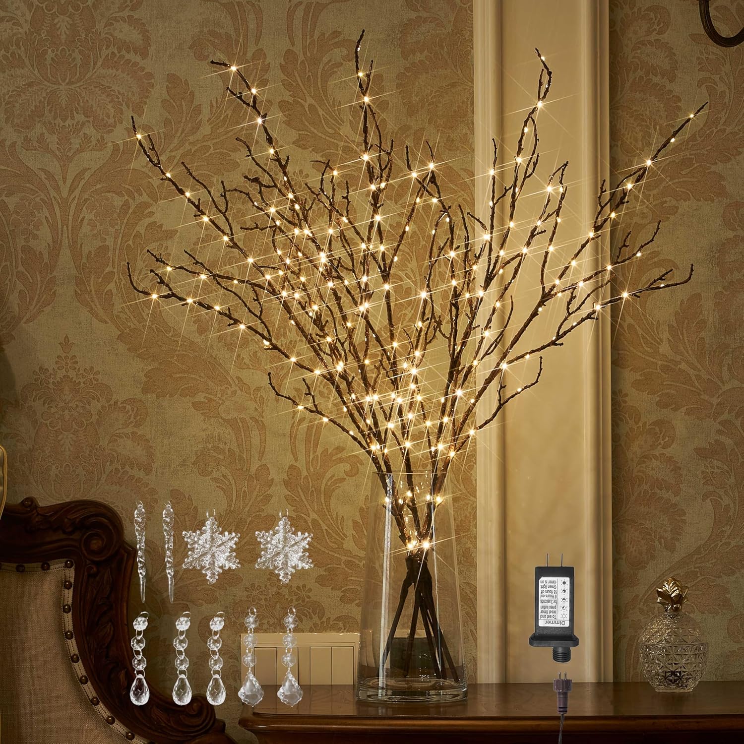 BAOLITVINE Lighted Branches Brown 32IN 200 Warm White Fairy Lights, Lighted Willow Branches with Timer, Dimmer for Home Bedroom Fireplace Christmas Decoration Inside Outdoor