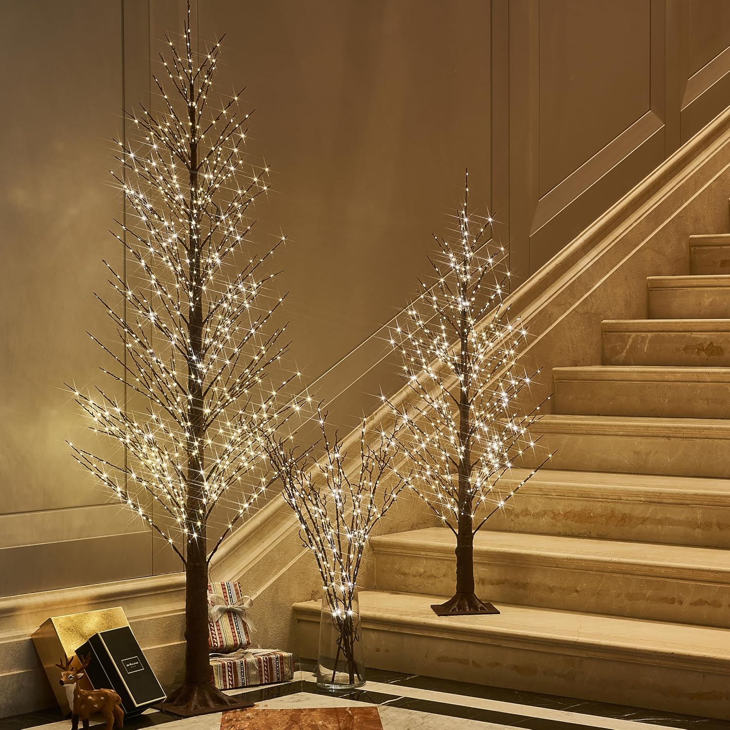 • 【LIFELIKE TEXTURE】: All hand crafted with lifelike brown bark finish covered. An exquisite lighted display for home, fireplace, mantle, bedroom or any concern decor