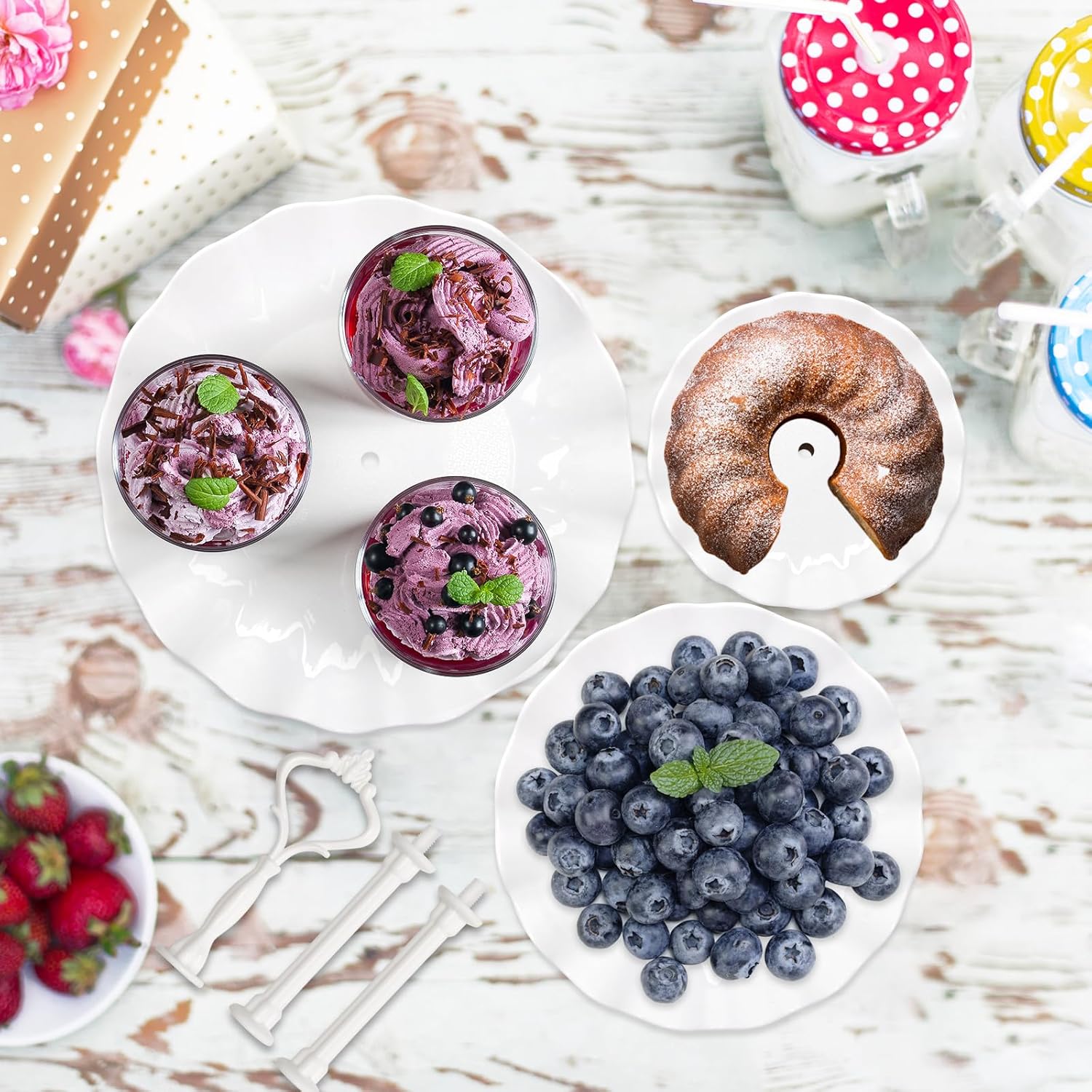 • Easy to Assemble: The whole cupcake stand has strength and stability by connecting the tiers with solid pillars and screws. Easy to assemble and requires no tools.