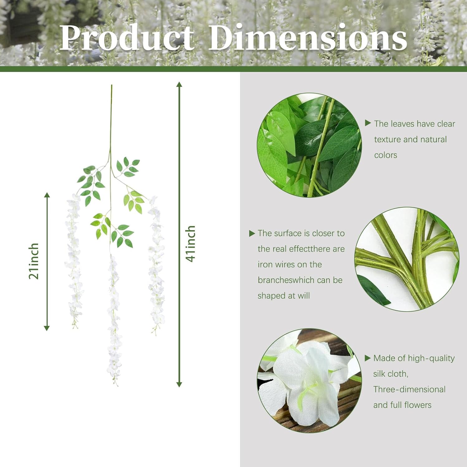 • 【White Wisteria Garland】Whether you decorate beautiful white wisteria hanging flowers indoors or outdoors, you can achieve a magical decorative effect. Decorating the interior makes your home look full of life while decorating the exterior makes the environment more springy.