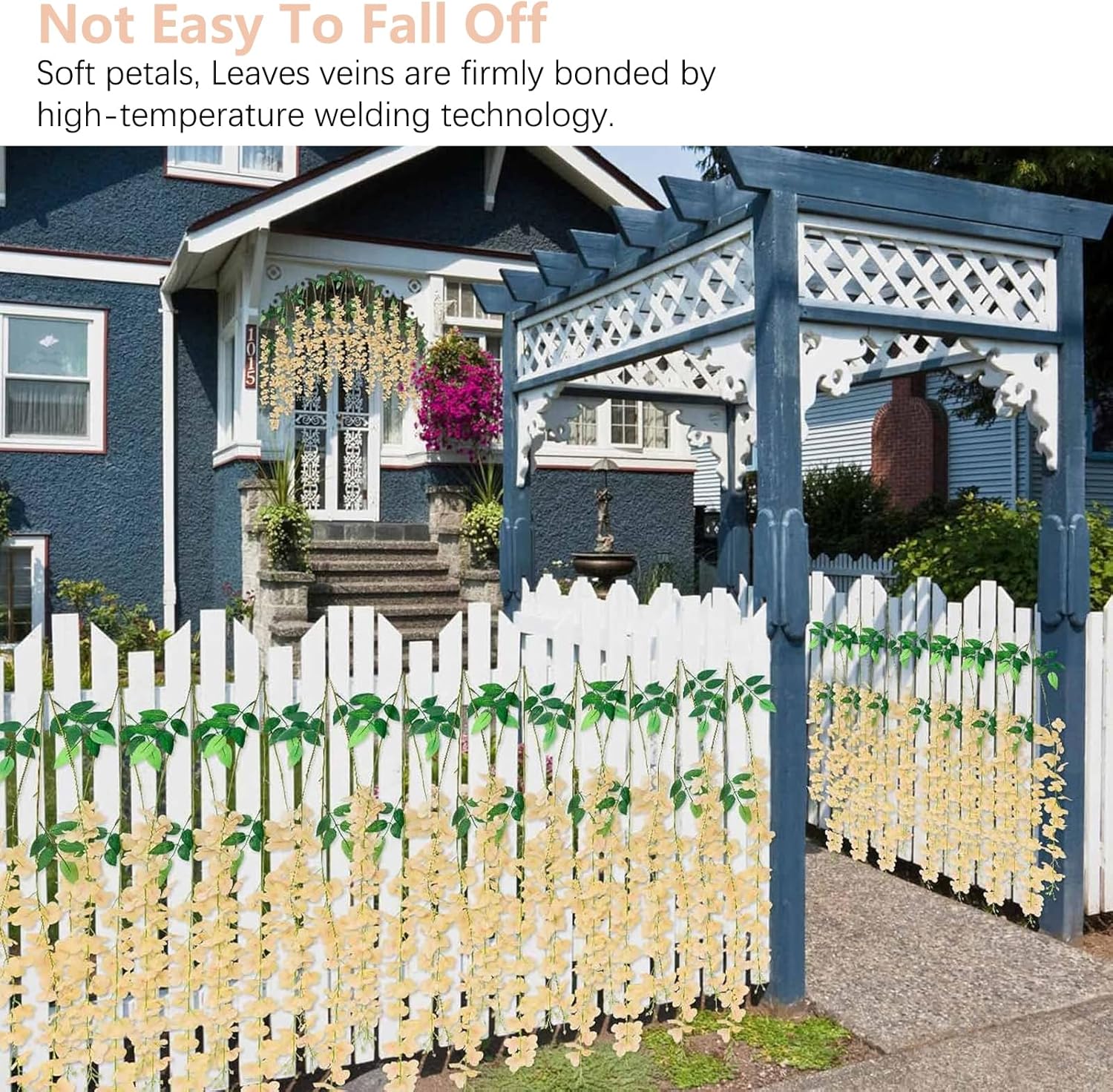 • 【Champagne Wisteria Garland】Whether you decorate beautiful champagne wisteria hanging flowers indoors or outdoors, you can achieve a magical decorative effect. Decorating the interior makes your home look full of life while decorating the exterior makes the environment more springy.