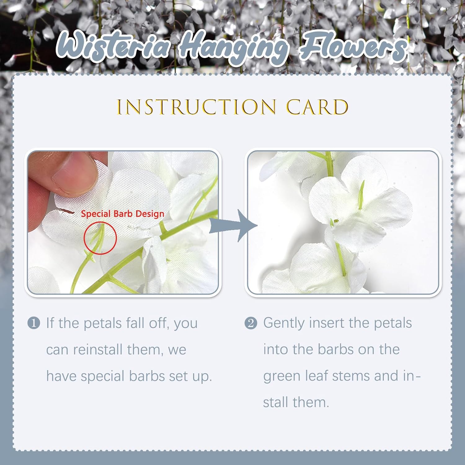 • 【Easy to Install】The grey wisteria flower vines stem are made of durable metal wire and covered with plastic. You can bend the wisteria flower in any shape to satisfy your decoration imagination without damaging it. And the wisteria flower is very easy to install and remove, you can reduce a lot of troubles on installation.