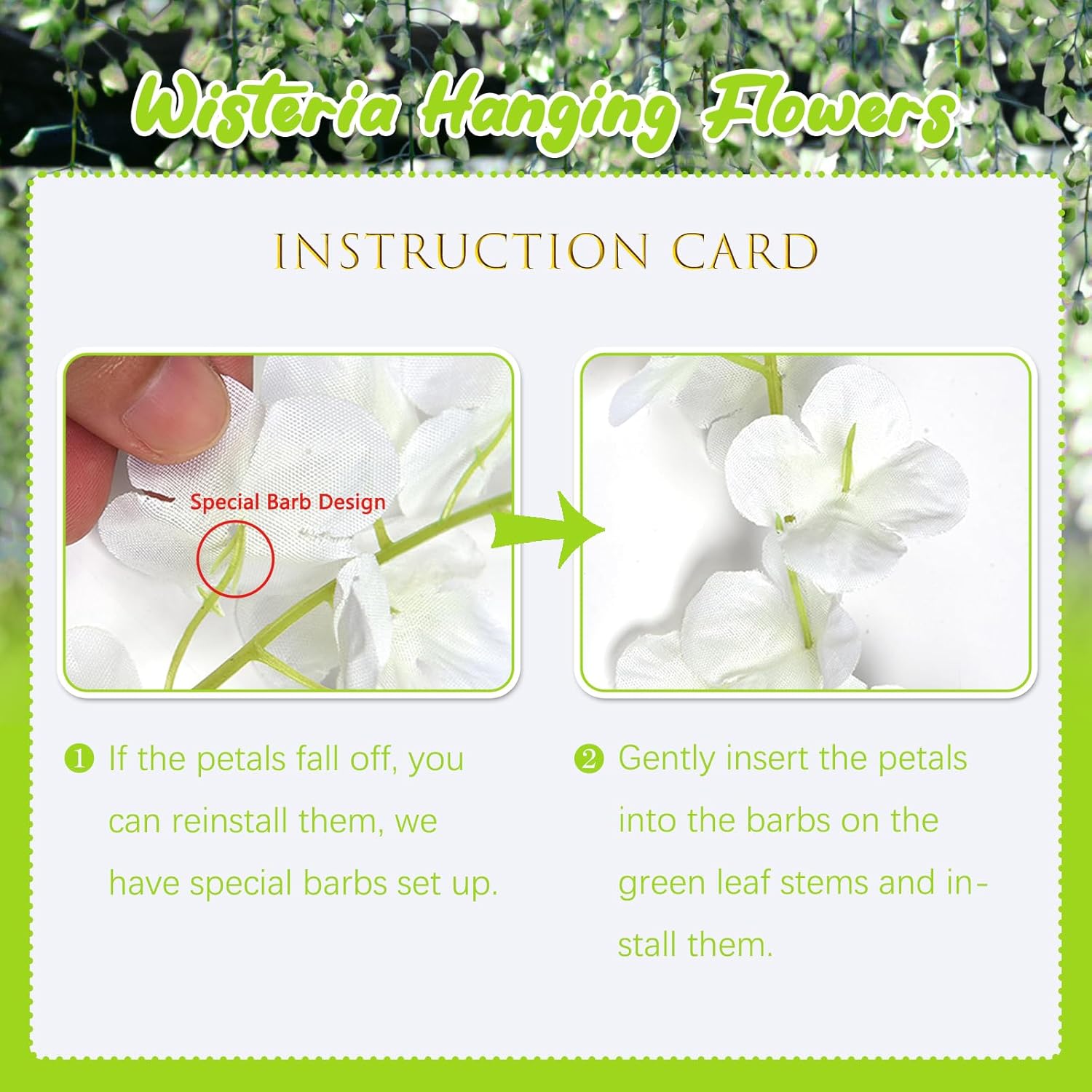 • 【Cycle Used】The green artificial wisteria garland is made of silk, the stem is made of metal wire and plastic, and it can be easily bent and recovered, so you can use it many times, very environmentally and cost-effective.