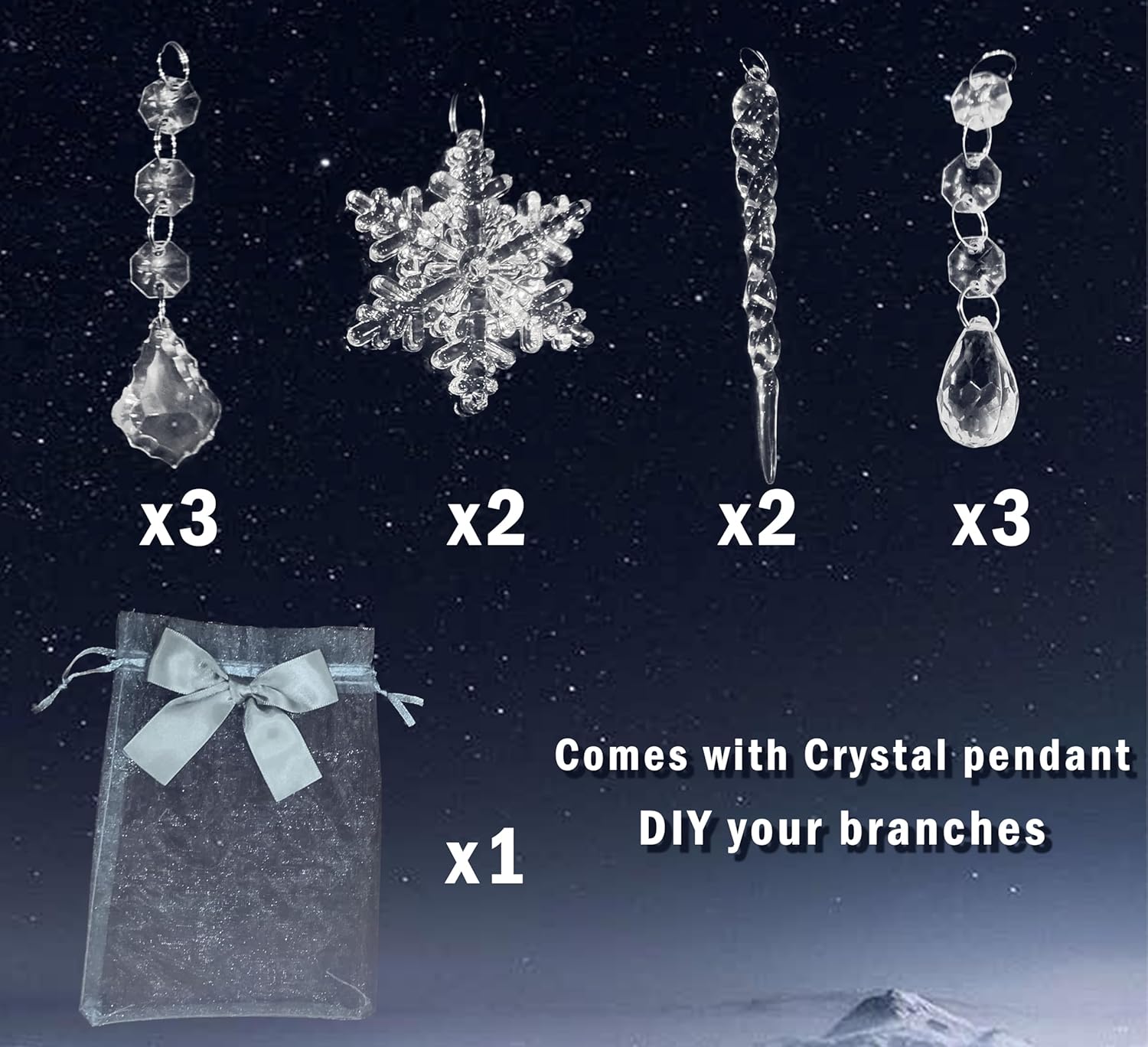 • πŸŽ„ Come with crystal Pendant: 4 different type of crystal decorations,just DIY your christmas branch lights