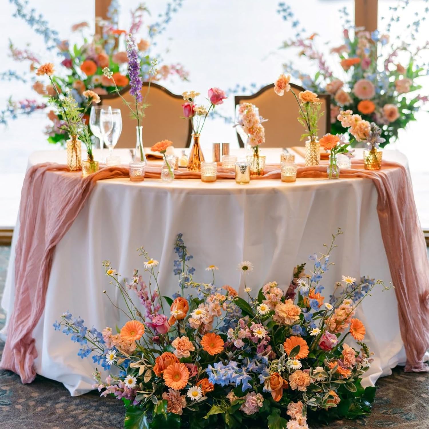 • 【Diversified Use】Boho cheesecloth Table Runner is necessary choice for beautifying tables. It's used for home decor, outdoor events, formal and informal setting in all seasons. Such as wedding decor, baby shower, bridal showers, parties, engagement banquet, Valentine's Day, Thanksgiving, Christmas.