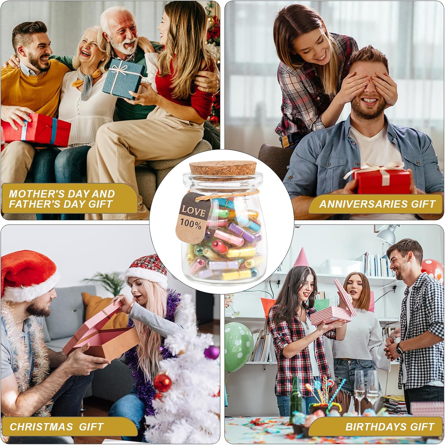 • Capsule Message in a Glass Bottle: Cute thing capsule design;Each glass bottle has 55pcs letter paper transparent,write down what you want to say and express.