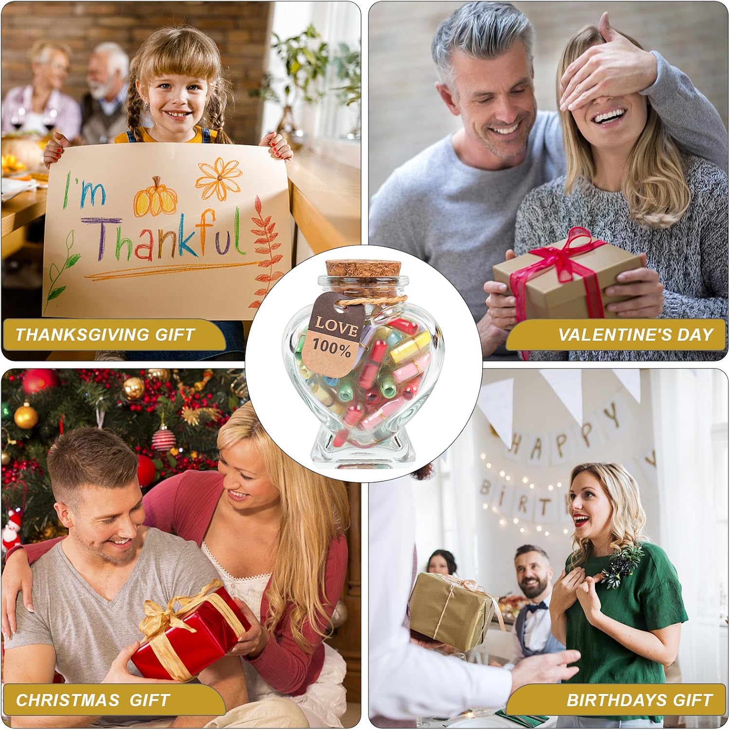 • PERFECT GIFTS:Message capsules can help you to deliver the words you can't spit out in a romantic and friendly way. So this message bottle is an ideal gift for anniversary, Valentine's Day, birthday, Mother's Day, Thanksgiving and Christmas to your family and loved ones.