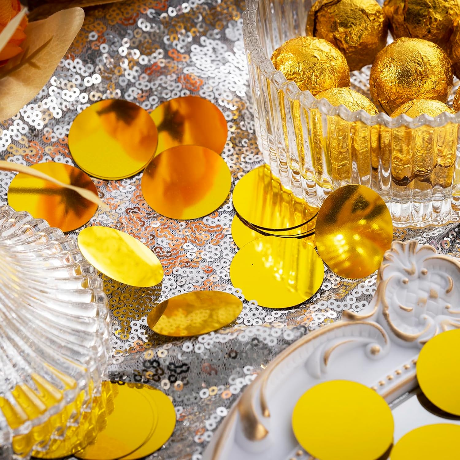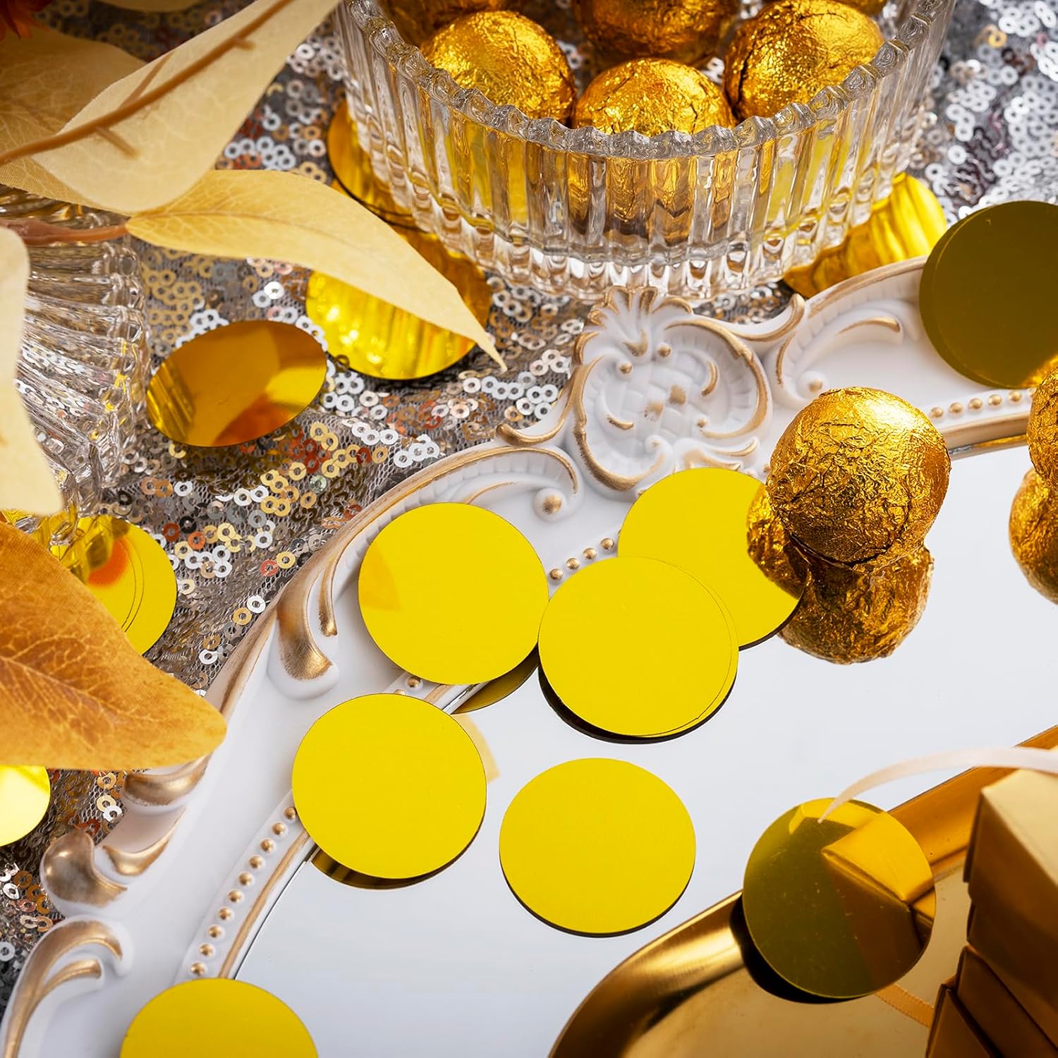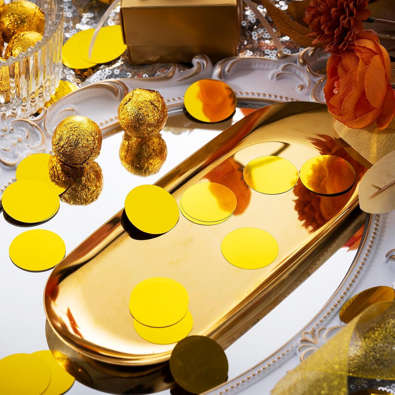 • Metallic Colored: Shiny gold circle dot confetti