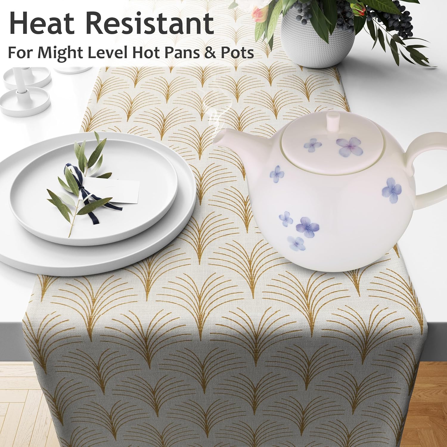 • Premium Fabric Material: Crafted from 100% cotton duck weave fabric, these table runners offering softness, durability, wrinkle resistance, stain resistance, heat resistance, and anti-slip properties. Protects your table from food stains, scratches, rings, and heat damage.