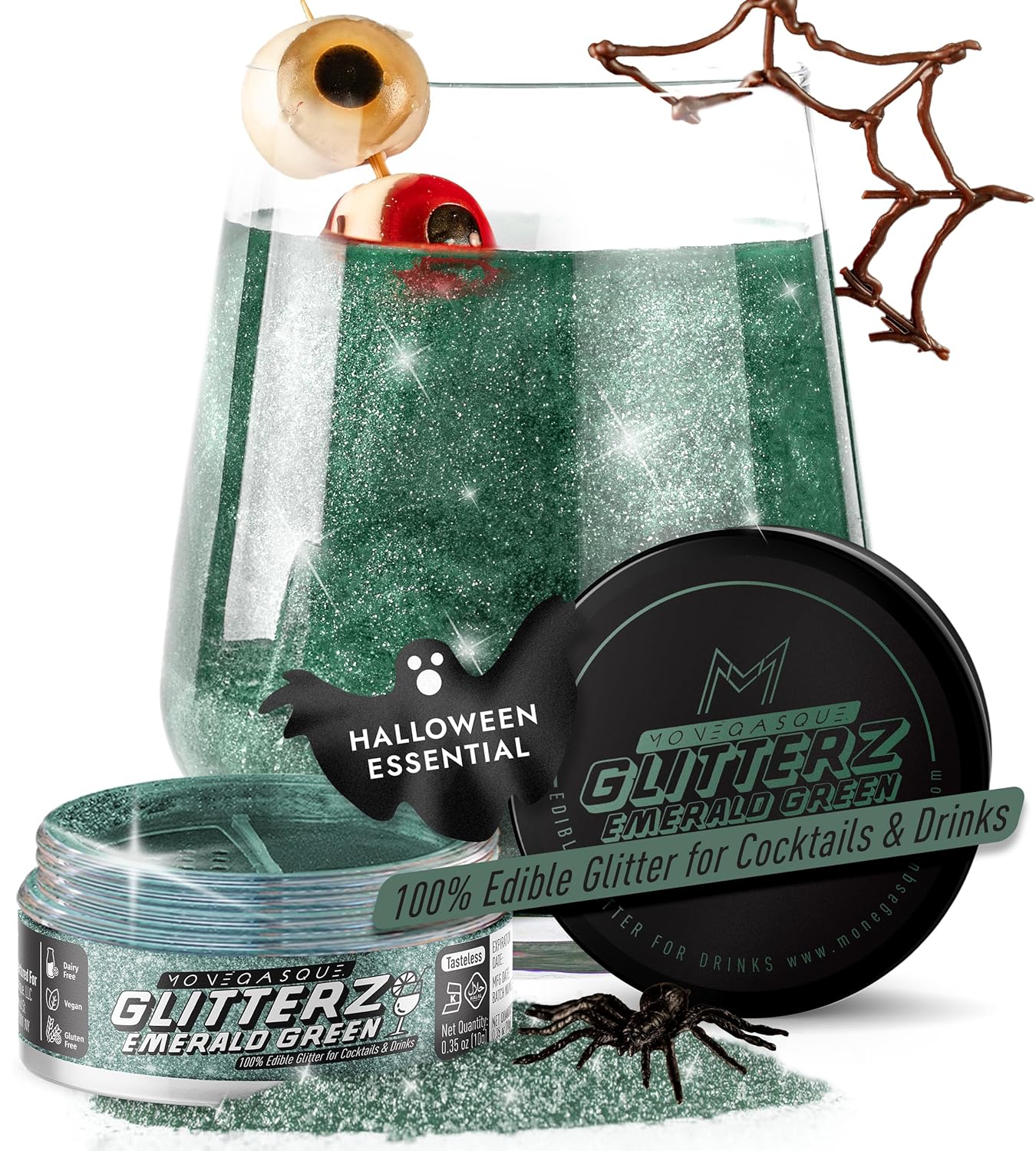 MONÉGASQUE Emerald Green Edible Glitter for Drinks 10g – Green Edible Glitter for Cakes & Cocktails – Halloween Food Coloring Spray for Cake Decorations – Drink Shimmer Powder – Cake Sprinkles